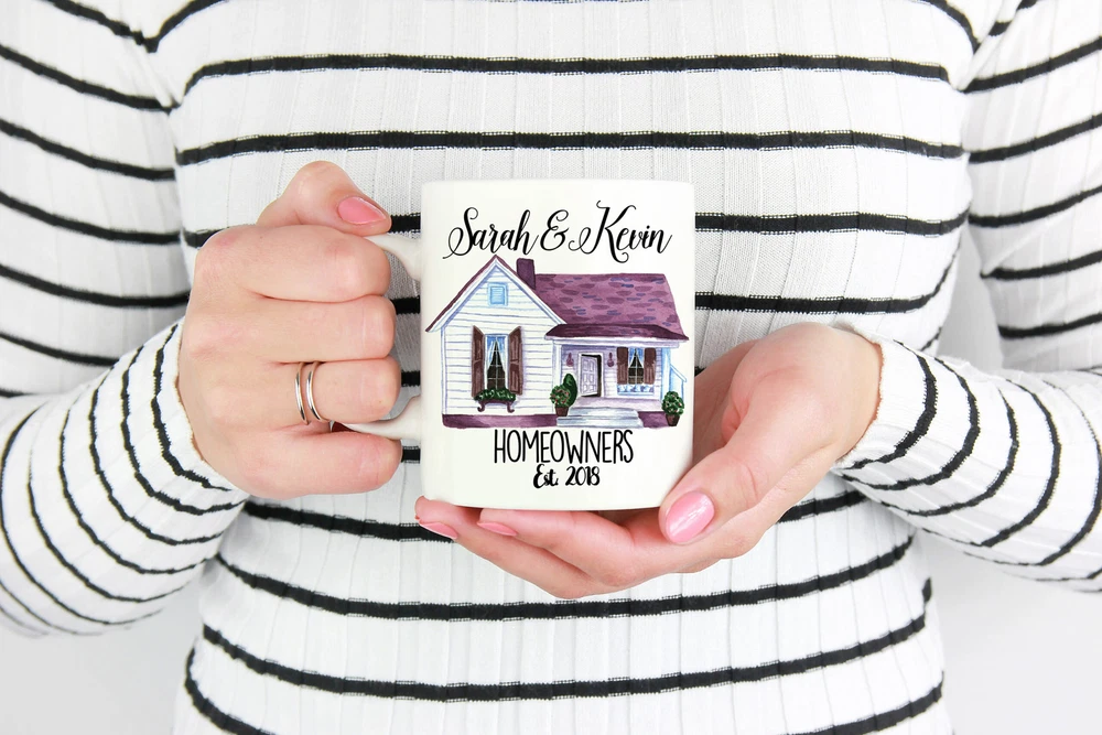 Custom Couples Housewarming Mug Housewarming Gift Home Owner Gift New Homeowner Product Details.. This high quality 11oz. ceramic white mug has a premium hard coat that provides crisp and vibrant color reproduction sure to last for years. Perfect for all hot & cold beverages. The highest quality printing possible is used. It will never fade no matter how many times you wash it. Material: 100% Ceramic. Print both sides. Dishwasher and Microwave Safe. High Gloss + Premium White Finish. Printed in the U.S.A. Personalized & Custom. We support personalized and custom mug to add custom, when placing an order, you can add notes to the "order note" in shipping address section. Also you can contact us directly via message. Shipping Info. Ready to ship in 1 to 2 business days, All products are made-to-order and proudly printed in the United States. Shipped by USPS and DHL, You will receive your order in 5-7 days. Replace & Refund. All products are defective during shipping broken, chipped will be replaced free of charge. You are not satisfied with the product, we will refund 100% money to you. If any other issues arise, please do not hesitate to message, we would be more than happy to assist you.