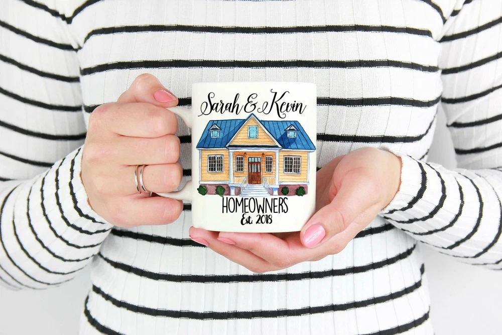 Custom Couples Housewarming Mug Housewarming Gift Home Owner Gift New Homeowner Product Details.. This high quality 11oz. ceramic white mug has a premium hard coat that provides crisp and vibrant color reproduction sure to last for years. Perfect for all hot & cold beverages. The highest quality printing possible is used. It will never fade no matter how many times you wash it. Material: 100% Ceramic. Print both sides. Dishwasher and Microwave Safe. High Gloss + Premium White Finish. Printed in the U.S.A. Personalized & Custom. We support personalized and custom mug to add custom, when placing an order, you can add notes to the "order note" in shipping address section. Also you can contact us directly via message. Shipping Info. Ready to ship in 1 to 2 business days, All products are made-to-order and proudly printed in the United States. Shipped by USPS and DHL, You will receive your order in 5-7 days. Replace & Refund. All products are defective during shipping broken, chipped will be replaced free of charge. You are not satisfied with the product, we will refund 100% money to you. If any other issues arise, please do not hesitate to message, we would be more than happy to assist you.