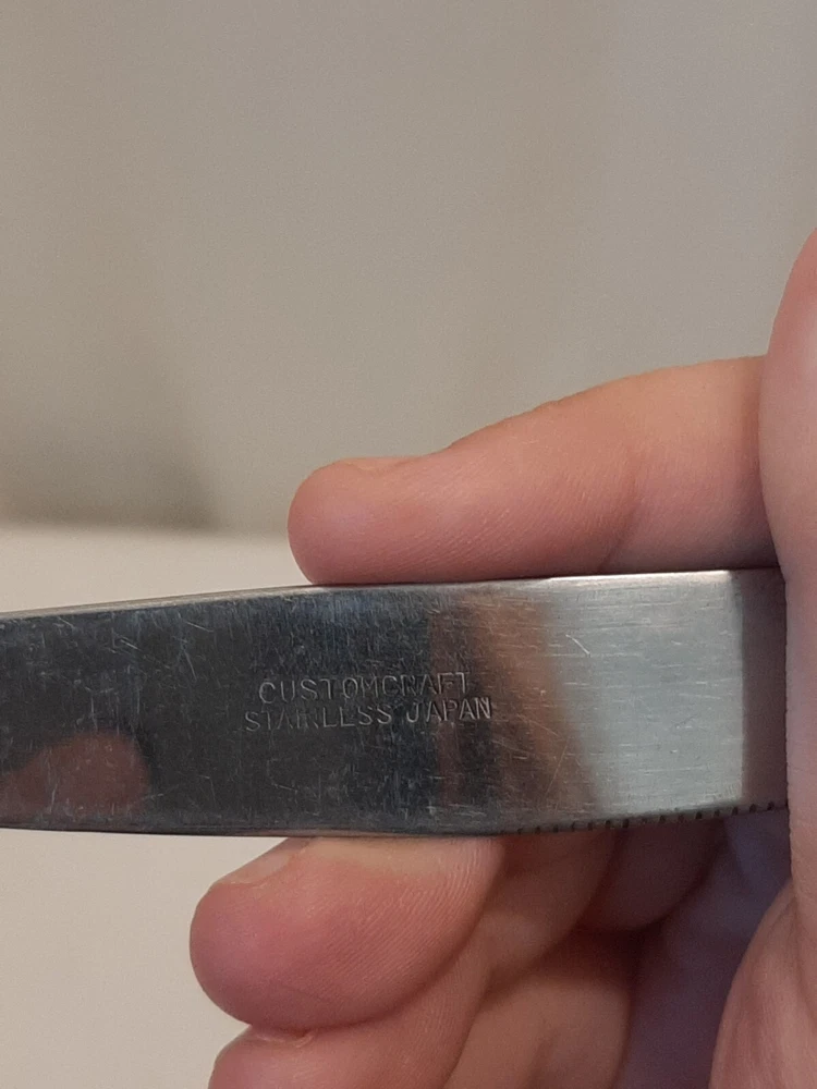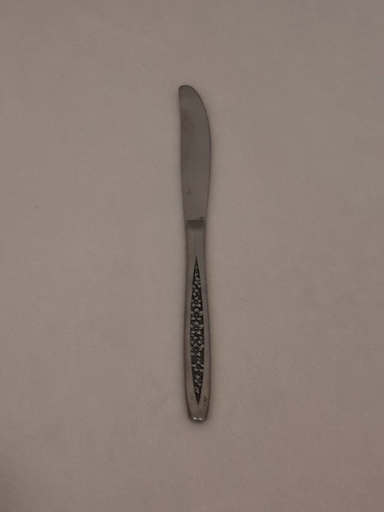 Custom Craft Stainless Dinner Knife Japan Flatware Floral Petal Lane Replacement In good pre-owned condition may show signs of wear from use/handling/storage/display. Please view all pics for condition/details/flaws/issues. SOLD AS IS There is/maybe marks/spots/dirt/debris/rust please see photos 1-9, there is/maybe paint loss/sticker loss please see photos 1-9, there is lite discoloration please see photos 1-9, there are surface scratches to item please see photos 1-9, please see all photos for condition/issues/details.