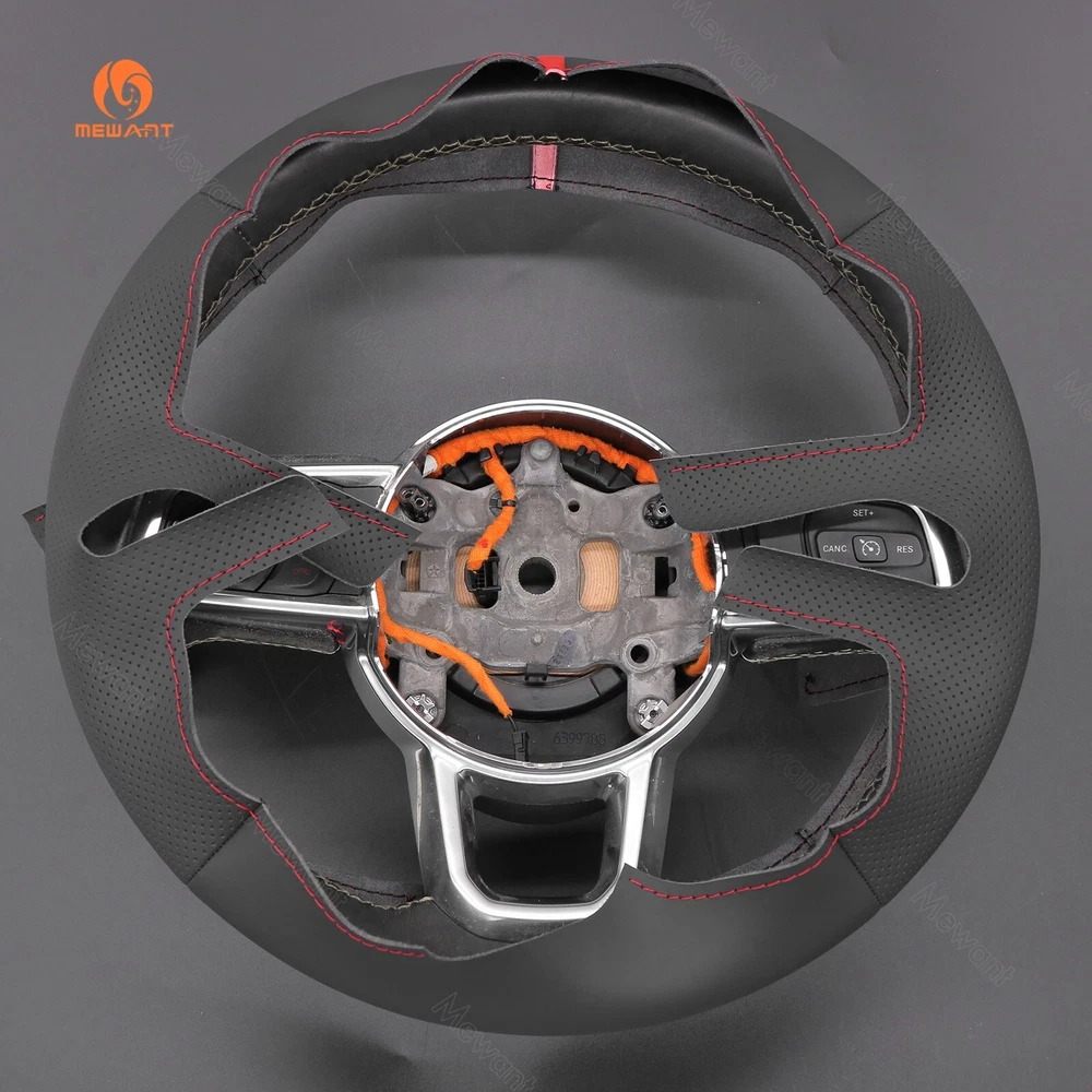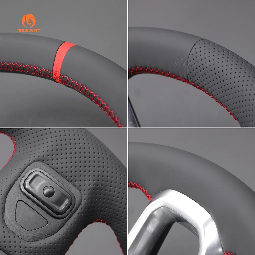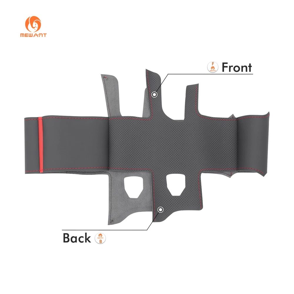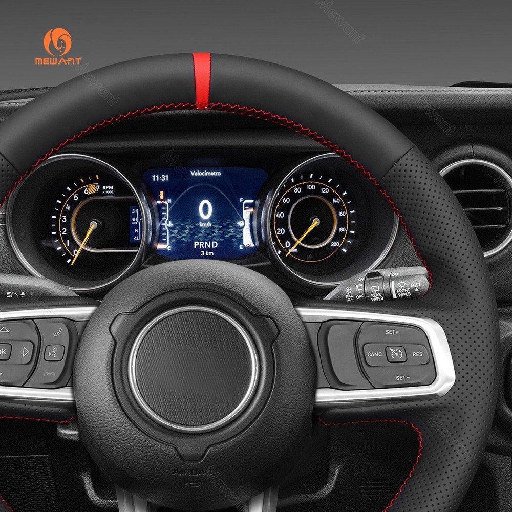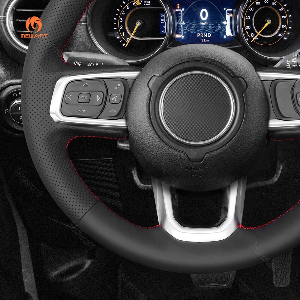 Real Leather Steering Wheel Cover for Jeep Gladiator (JT) Wrangler (JL) ONE Car ONE Template Factory buy brand new steering wheels from all over the world, to make the templates which could 100% fit the corresponding car model. Personalized customization Many colors of thread and material for choose to customize. According to the colors and materials you could customize a new style cover. Multiple protection With soft genuine leather, guarantee a good grip while driving. With 100% fit Mewant cover, it won’t slip while driving. The Original Steering Wheel: N OTICE This cover Suitable car model: for Jeep Gladiator (JT) 2020-2024 / Wrangler (JL) 2019-2024 / Wrangler Unlimited 2018-2023 The default design is for steering wheel without shift buttons, if yours has, please contact us before prdering!!! Suitable car model name and launch year are just a reference, different countries have different model name and launch time, so please pay attention to the steering wheel picture above, make sure they are the same , if not sure, feel free to contact us. Default design: Design elements: A: Red Leather Stripe B+D: Black Smooth Genuine Leather C: Black Perforated Genuine Leather E: Red Thread If you want to change the material or color, please contact our customer service when you order. Features * Increased Safety :High quality leather, super soft & smooth , non-slip & durable. it provides great grip on the steering wheel, massage your palm and relieve drive fatigue , bring you a great touch and feel . * Top Quality: delicate workmanship, super technology and flat sewing stitches, The steering wheel gloves are the perfect way to transform the look of your vehicles interior while protecting your original steering wheel at the same time from wear and tear. Self-installation Needed: Our steering wheel covers need to stitch by yourselves, the installation tools, video and instructions were provided to assistant, please do NOT remove the original leather before the installation, or it will not fit. Attachment:Needle,thread,double sided tape,yellow small blade ,