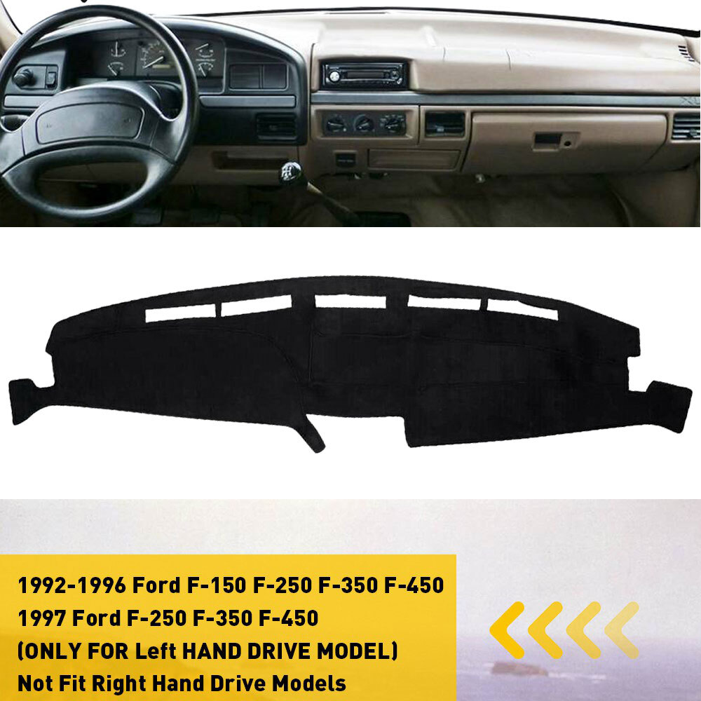 For 1992-1996 F150 Fit for: 1992-1996 Ford F-150 F-250 F-350 F-450 1997 Ford F-250 F-350 F-450 (ONLY FOR LEFT HAND DRIVE MODEL) For the year and models, please check the compatibility! Specification: Product material: Polyester + anti-skid silica gel Product color: black Features: *Shading function: Prevent sunlight refraction and increase brightness of front windshield. *Sunshade function: Minimize such ultraviolet radiation or sunlight reflection damage, making your driving safer and more comfortable. *Anti-slip fucntion: Dash Mat For 92-96 Ford F150 F250 F350 F450 Sun Shade Pad Car Dashboard Cover For 1992-1996 F150 Fit for: 1992-1996 Ford F-150 F-250 F-350 F-450 1997 Ford F-250 F-350 F-450 (ONLY FOR LEFT HAND DRIVE MODEL) For the year and models, please check the compatibility! Specification: Product material: Polyester + anti-skid silica gel Product color: black Features: *Shading function: Prevent sunlight refraction and increase brightness of front windshield. *Sunshade function: Minimize such ultraviolet radiation or sunlight reflection damage, making your driving safer and more comfortable. *Anti-slip fucntion: The anti-skid silica gel on the bottom is designed to ensure the mat is not slide easily during driving. *Great protection: Protecting the Dashboard surface from scratches, cracks and warping. *Superior material: Polyester material is used on mat surface which is quite durable ,elastic and without deformation and pilling. *Perfect fit: With its well-cut shape, it will line up with your car in all the right spots. Easy installed and No modification needed. *High qulity: Durable, colorfast, non-shrinking needle-punch carpet *In Winter, warm the dashboard *In Summer, block UV rays from heating-up,cool the car, prevent high temperature *Environment-friendly materials, no bad smells, anti-slip, easy to install Simple installation: 1. Clean the dashboard. 2. Place the mat on top of it. 3. Done. Package Include: Dashboard Cover Mat *1 For 1997-2003 F150 Fit for: Ford F150 1997-2003 Ford Expedition 1997-2002 Not Fit F250 F350 F450 F550 1997-2004 (ONLY FOR Left HAND DRIVE MODEL) Not Fit Right Hand Drive Models Specification: Product material: Polyester + anti-skid silica gel Product color: black Features: *Sunshade function: Prevent sunlight refraction and increase brightness of front windshield. Minimize such ultraviolet radiation or sunlight reflection damage, making your driving safer and more comfortable. *Anti-slip function: The anti-skid silica gel on the bottom is designed to ensure the mat is not slide easily during driving. *Great protection: Protecting the Dashboard surface from scratches, cracks and warping. *Superior material: Polyester material is used on mat surface which is quite durable ,elastic and without deformation and pilling. *Perfect fit: With its well-cut shape, it will line up with your car in all the right spots. *High qulity: Durable, colorfast, non-shrinking needle-punch carpet *Easy installation Simple installation with direct replacement and convenient disassembly,other modifications are not required. *In Winter, warm the dashboard *In Summer, block UV rays from heating-up,cool the car, prevent high temperature *Environment-friendly materials, no bad smells, anti-slip. Simple installation: 1. Clean the dashboard. 2. Place the mat on top of it. 3. Done. Package Include: Dashboard Cover Mat *1 For 2004-2008 F150 Fit for: 2004-2008 Ford F150 (ONLY FOR LEFT HAND DRIVE MODEL) For the year and models, please check the compatibility! Specification: Product material: Polyester + anti-skid silica gel Product color: black Features: *Shading function: Prevent sunlight refraction and increase brightness of front windshield. *Sunshade function: Minimize such ultraviolet radiation or sunlight reflection damage, making your driving safer and more comfortable. *Anti-slip fucntion: The anti-skid silica gel on the bottom is designed to ensure the mat is not slide easily during driving. *Great protection: Protecting the Dashboard surface from scratches, cracks and warping. *Superior material: Polyester material is used on mat surface which is quite durable ,elastic and without deformation and pilling. *Perfect fit: With its well-cut shape, it will line up with your car in all the right spots. Easy installed and No modification needed. *High qulity: Durable, colorfast, non-shrinking needle-punch carpet *In Winter, warm the dashboard. *In Summer, block UV rays from heating-up,cool the car, prevent high temperature. *Environment-friendly materials, no bad smells, anti-slip, easy to install. Simple installation: 1. Clean the dashboard. 2. Place the mat on top of it. 3. Done. Package Include: Dashboard Cover Mat *1 For 2009-2014 F150 Fit for: Ford F150 2009-2014 Ford Lobo 2009-2014(Mexico) Ford Lobo Raptor 2009-2014(Mexico) (ONLY FOR LRFT HAND DRIVE MODEL) Not Fit Right Hand Drive Models. Specification: Product material: Polyester + anti-skid silica gel Product color: black Features: *Sunshade function: Prevent sunlight refraction and increase brightness of front windshield. Minimize such ultraviolet radiation or sunlight reflection damage, making your driving safer and more comfortable. *Anti-slip function: The anti-skid silica gel on the bottom is designed to ensure the mat is not slide easily during driving. *Great protection: Protecting the Dashboard surface from scratches, cracks and warping. *Superior material: Polyester material is used on mat surface which is quite durable ,elastic and without deformation and pilling. *Perfect fit: With its well-cut shape, it will line up with your car in all the right spots. *High qulity: Durable, colorfast, non-shrinking needle-punch carpet *Easy installation Simple installation with direct replacement and convenient disassembly,other modifications are not required. *In Winter, warm the dashboard *In Summer, block UV rays from heating-up,cool the car, prevent high temperature *Environment-friendly materials, no bad smells, anti-sli
