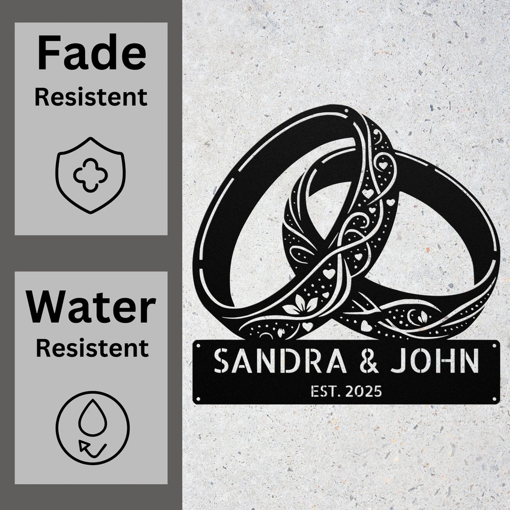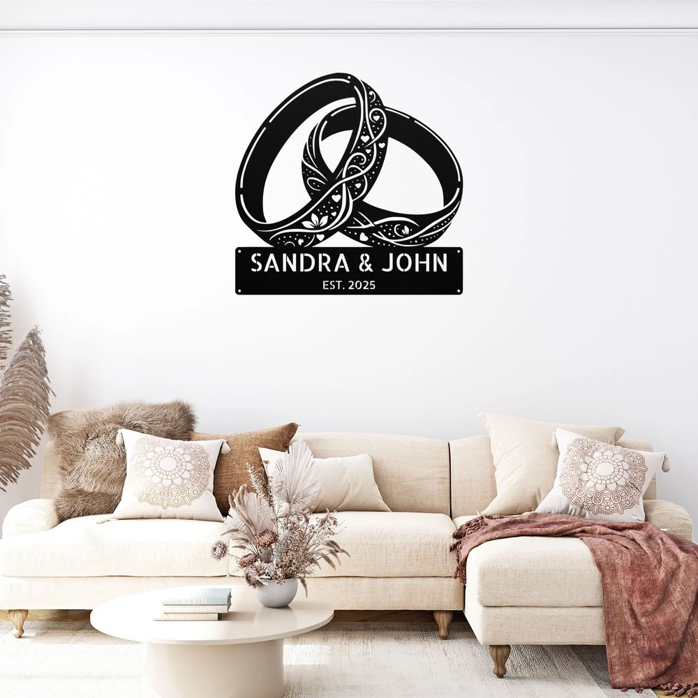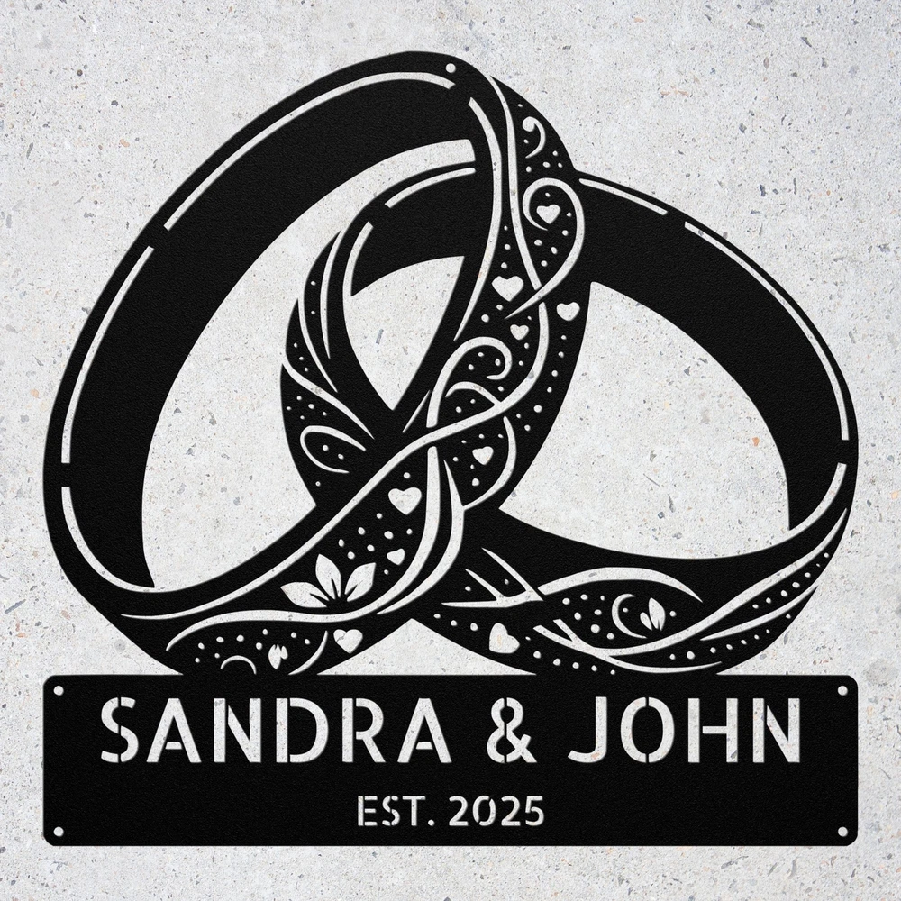 Product Description Custom Floral Rings Metal Sign Personalized Couple Wedding Anniversary Gifts Celebrate love and commitment with this Custom Rings Metal Sign , a beautifully designed personalized wedding gift perfect for newlyweds, engaged couples, anniversaries, and romantic home decor . Featuring interlocking rings, elegant script, and a customizable name or date , this high-quality metal sign is a timeless symbol of eternal love . 🌟 Key Features: ✔ Customizable with Names, Wedding Date, or Special Message – A unique and heartfelt keepsake . ✔ Premium-Quality Metal – Crafted from durable, rust-resistant steel or aluminum for long-lasting elegance . ✔ Beautiful Wedding Ring Design – A symbol of love, unity, and commitment . ✔ Weather & Fade-Resistant Finish – Ideal for both indoor & outdoor display . ✔ Perfect for Wedding Gifts, Anniversaries, & Home Decor – A romantic and meaningful addition to any space. 🎁 A Thoughtful Gift for Couples! 🎁 Looking for a special wedding, engagement, or anniversary gift ? This personalized rings metal sign is a one-of-a-kind present that newlyweds and long-time couples will cherish forever. 📏 Available Sizes: Choose from multiple sizes to fit bedrooms, living rooms, wedding venues, or reception areas . 🔧 Easy to Hang & Display: Comes with pre-drilled holes for quick and secure mounting on walls, doors, or wedding backdrops . 💍 Perfect for: Wedding & Engagement Gifts 👰♀️🤵♂️ Anniversary & Romantic Home Decor ❤️ Bridal Shower & Couple’s Celebration 🎉 Bedroom & Living Room Wall Art 🏡 Wedding Reception & Venue Decorations 💐 Service and Color Choice Our metal signs are designed to be personalized just for you, making them the perfect addition to any space! The default color for our signs is Black , but we also offer a variety of beautiful options including Copper, Gold, White, and Silver . After placing your order, simply contact us with your preferred color choice, and we'll ensure your sign is exactly how you envision it. Let’s create something special together!