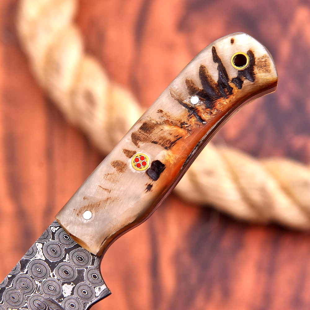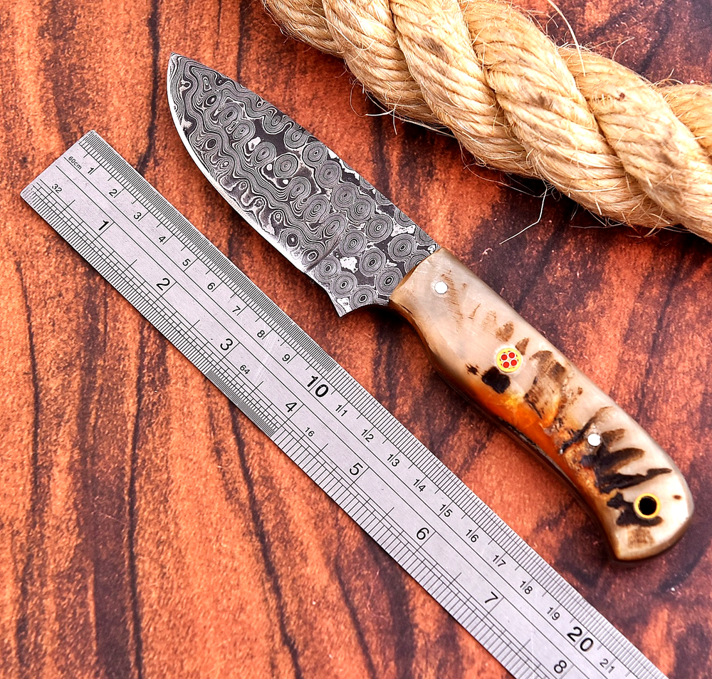Handmade: Yes Tang: Full Brand: M DAMASCUS Type: Everyday Carry, Hunting, Survival, Throwing, TRACKER Blade Edge: VERY SHARP Blade Material: Damascus Steel Blade Length: 4" Original/Reproduction: Original Handle Material: Ram Horn Dexterity: Ambidextrous Blade Type: Drop Point Features: Sheath Included Vintage: No Blade Color: Multi-Color