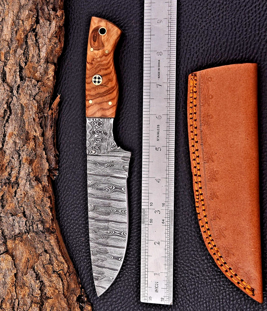 Tang: Hidden Vintage: No Blade Material: Damascus Steel Blade Color: Gray Dexterity: Ambidextrous Blade Type: Drop Point Brand: M DAMASCUS Handmade: Yes Features: Sheath Included Blade Length: 5" inches Blade Edge: VERY SHARP Handle Material: WOOD HANDLE Type: Bowie Knife, Everyday Carry, Hunting, Survival, Throwing, SKINNER KNIFE, Damascus Knife, Skinning, Gift, EDC Knife Original/Reproduction: Original