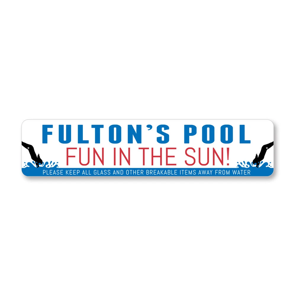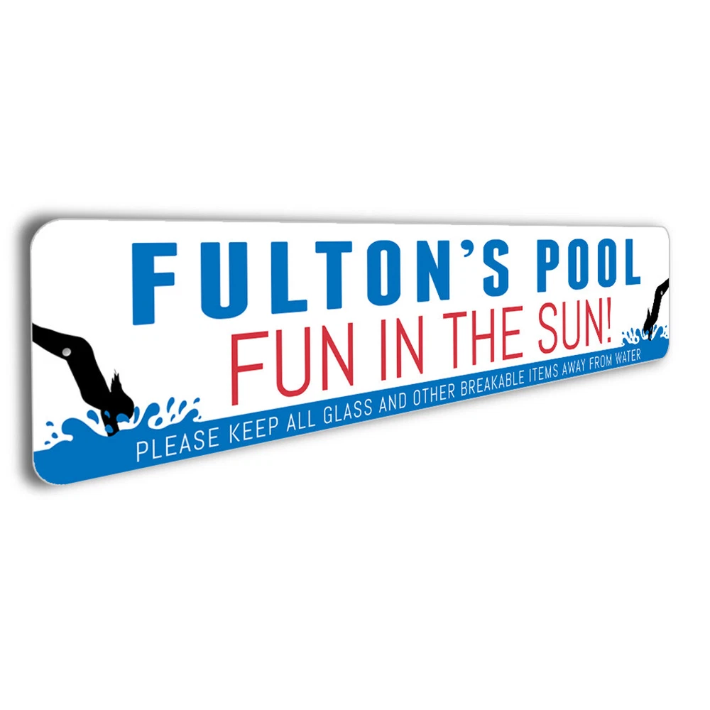 The Lizton Sign Shop Product Description Custom Fun In The Sun Pool Metal Sign **there may be slight variations in color and text spacing, however your sign will be very similar to the image above. Quality Aluminum Street Signs Sign Information Aluminum Brand New Sign Comes with rounded corners and pre-drilled for easy hanging. We use the highest quality materials - 100% USA-made! Great Gift Idea - Our signs truly make a one of a kind gift. Personalize the sign with the text you want to add. Custom text for the sign can be sent to us via email. A BRAND NEW SIGN!! All of our street signs are made of premium materials. The sign itself is made of aluminum and will never rust providing years of enjoyment indoors and outdoors. No Cheap plastic!! The Lizton Sign Shop specializes in quality personalized custom aluminum signs for any occasion. These make the perfect sign for any man cave, office, basement, garage, college dorm, kids bedroom, game room, bar, pub, tavern or countless other places. *Colors may vary slightly from one computer screen to the next but the image should be very close. All content and designs are subject to copyright and may not be reproduced in any form. Payment Methods We would prefer payment to be made through paypal but we also accept all major credit cards. If you select the credit card option please contact us after you make your purchase and we can walk you through the steps to make a secure payment. Return Policies We will accept returns within 30 days of the purchase date. The buyer is responsible for any costs to return the item or items. Returns will only be accepted for items that were damaged in shipping or if we made an error in the manufacturing of your item, i.e. spelling error.