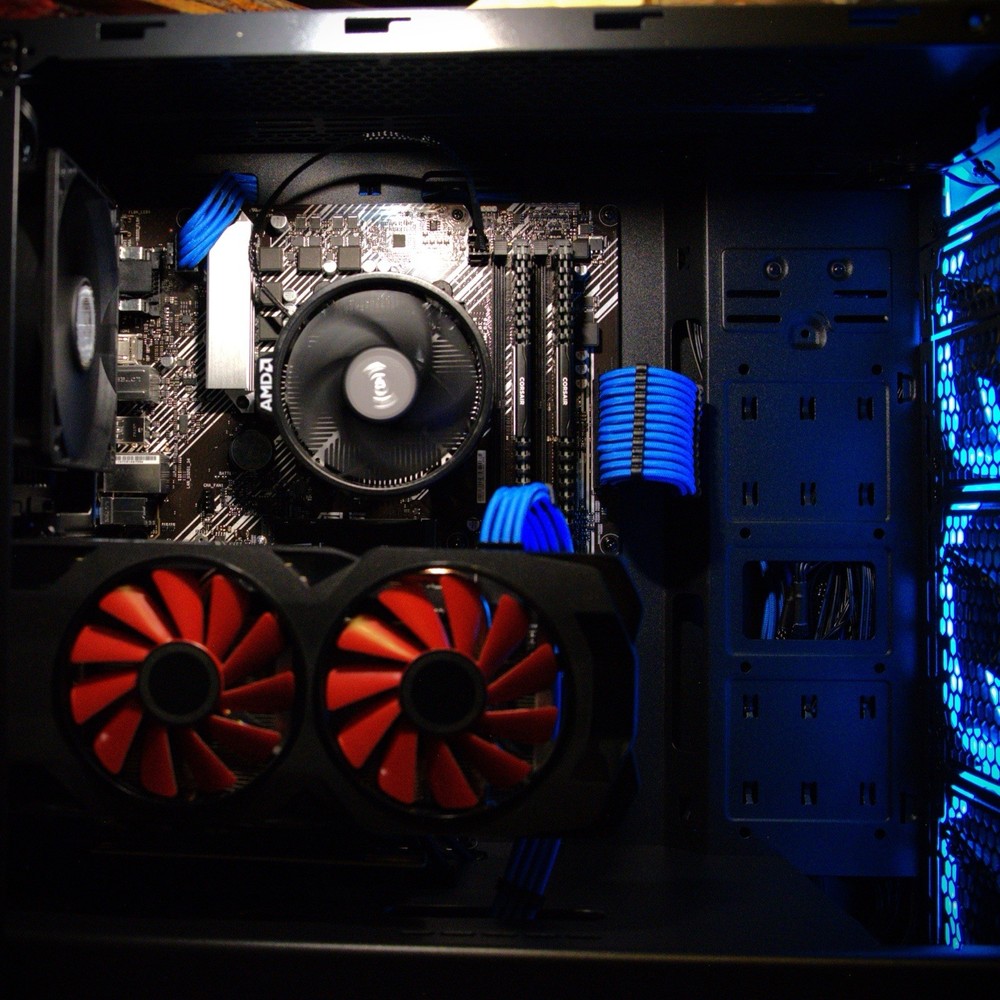 Apevia spirit 600w PSU Asus Prime B450 M-A ii Radeon Rx 570 8gb Aorus wifi 6e Crucial P3 1 tb NMVe Corsair Vengeance 16 gb 3600MHz ddr4