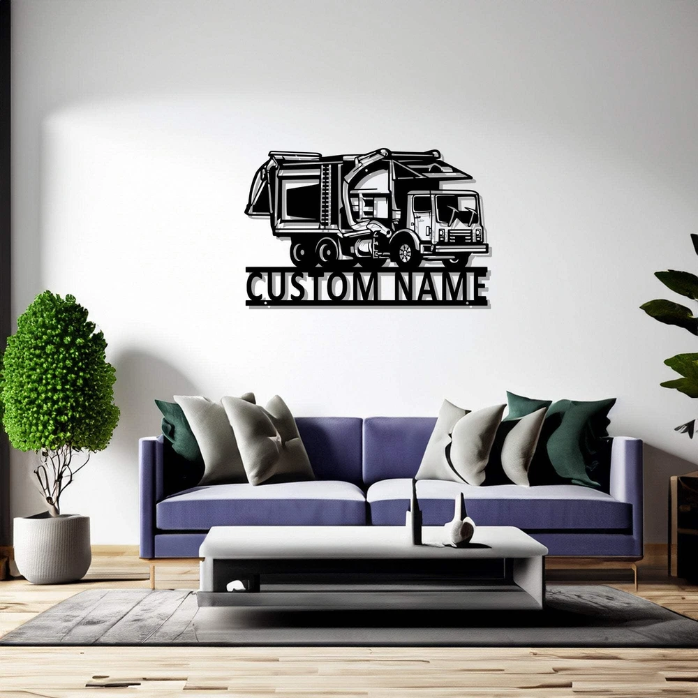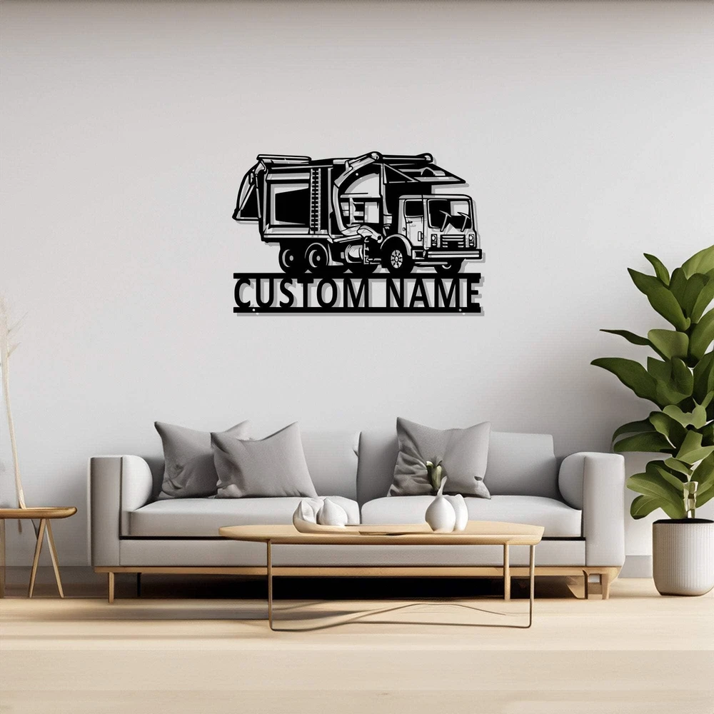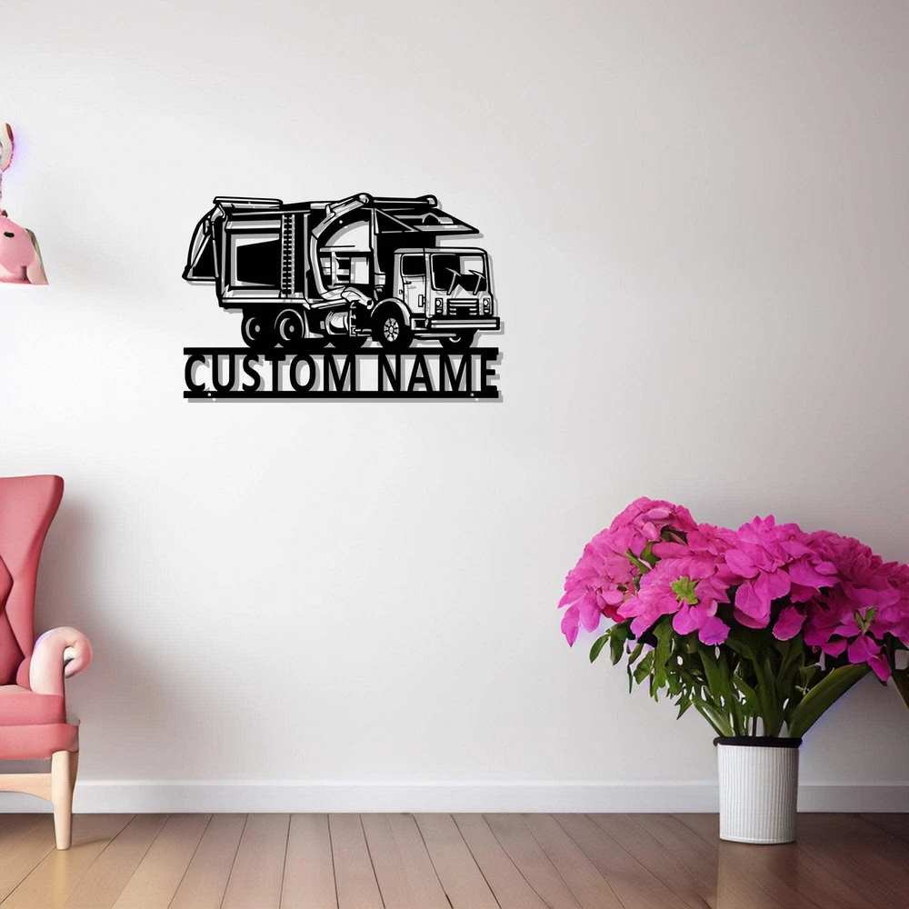 Custom Garbage Truck Metal Wall Art Personalized Garbage Truck Name Sign Decorat