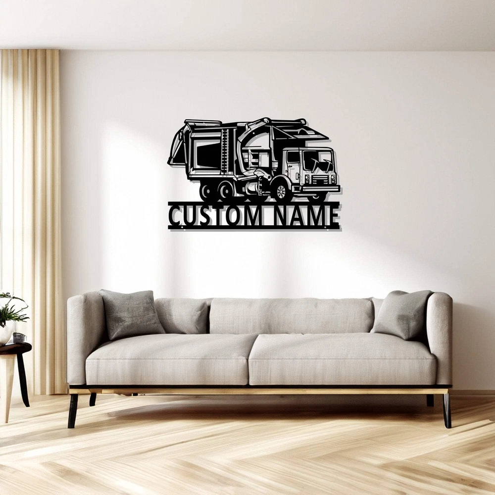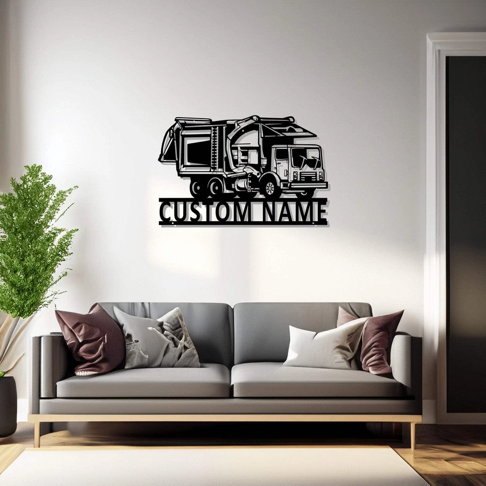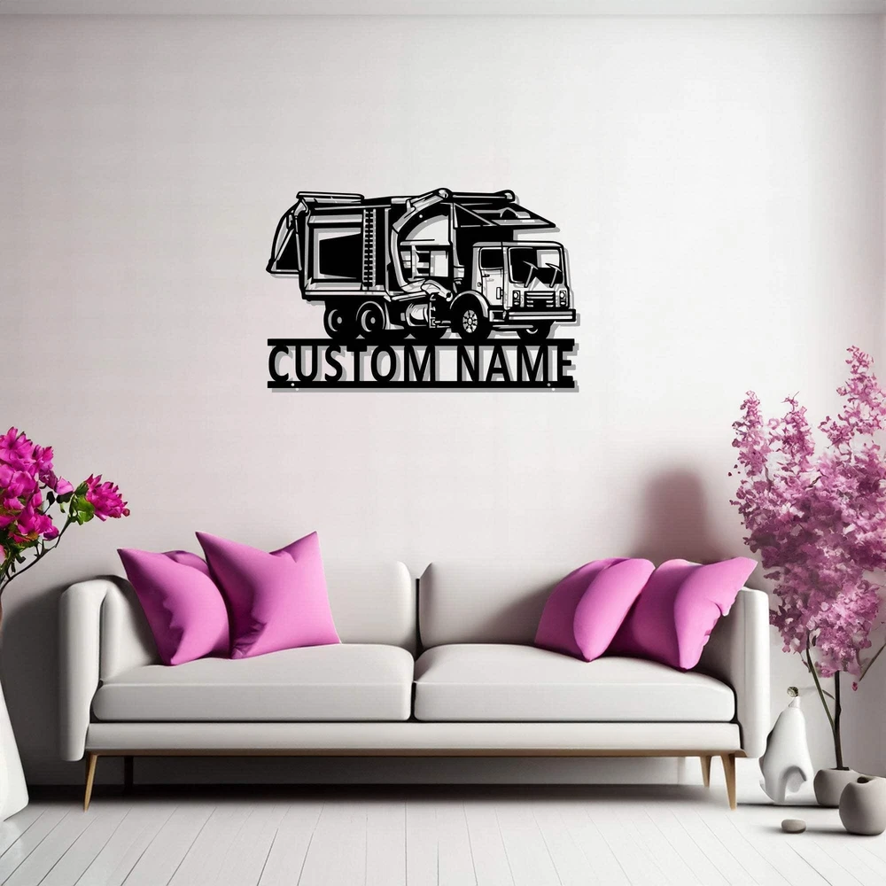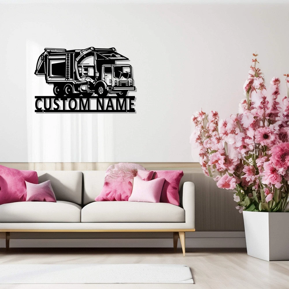 Custom Garbage Truck Metal Wall Art Personalized Garbage Truck Name Sign Decorat