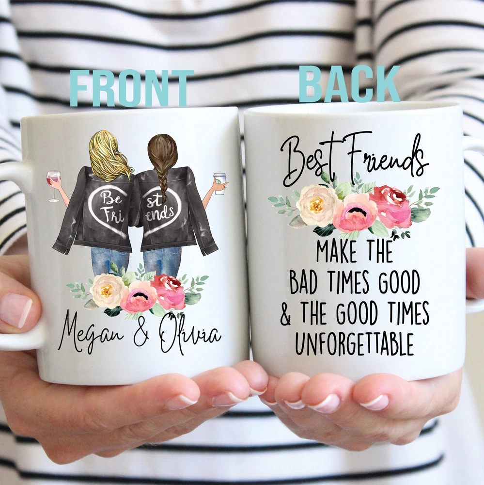 Custom Gift For Best Friend Custom Bff Mug Moving Away Gift Long Distance Friend Product Details.. This high quality 11oz. ceramic white mug has a premium hard coat that provides crisp and vibrant color reproduction sure to last for years. Perfect for all hot & cold beverages. The highest quality printing possible is used. It will never fade no matter how many times you wash it. Material: 100% Ceramic. Print both sides. Dishwasher and Microwave Safe. High Gloss + Premium White Finish. Printed in the U.S.A. Personalized & Custom. We support personalized and custom mug to add custom, when placing an order, you can add notes to the "order note" in shipping address section. Also you can contact us directly via message. Shipping Info. Ready to ship in 1 to 2 business days, All products are made-to-order and proudly printed in the United States. Shipped by USPS and DHL, You will receive your order in 5-7 days. Replace & Refund. All products are defective during shipping broken, chipped will be replaced free of charge. You are not satisfied with the product, we will refund 100% money to you. If any other issues arise, please do not hesitate to message, we would be more than happy to assist you.