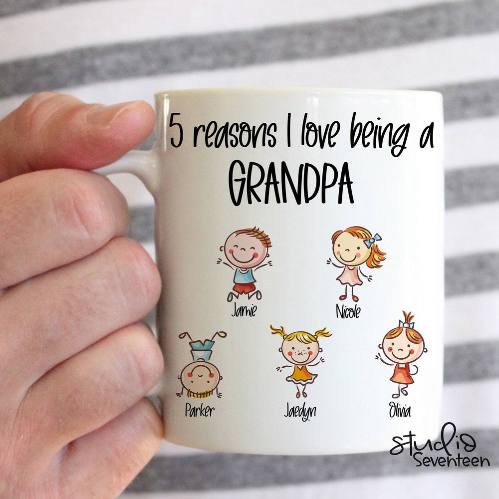 Personalized Grandpa Mug New Grandfather Gift Custom Birthday Gift Idea For Papa Product Details.. This high quality 11oz. ceramic white mug has a premium hard coat that provides crisp and vibrant color reproduction sure to last for years. Perfect for all hot & cold beverages. The highest quality printing possible is used. It will never fade no matter how many times you wash it. Material: 100% Ceramic. Print both sides. Dishwasher and Microwave Safe. High Gloss + Premium White Finish. Printed in the U.S.A. Personalized & Custom. We support personalized and custom mug to add custom, when placing an order, you can add notes to the "order note" in shipping address section. Also you can contact us directly via message. Shipping Info. Ready to ship in 1 to 2 business days, All products are made-to-order and proudly printed in the United States. Shipped by USPS and DHL, You will receive your order in 5-7 days. Replace & Refund. All products are defective during shipping broken, chipped will be replaced free of charge. You are not satisfied with the product, we will refund 100% money to you. If any other issues arise, please do not hesitate to message, we would be more than happy to assist you.