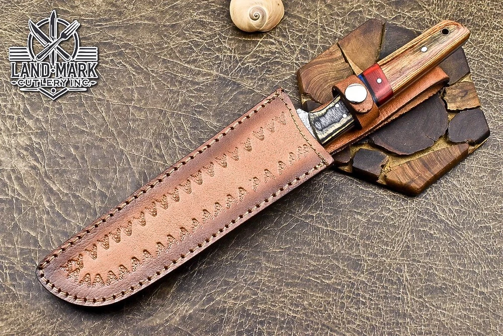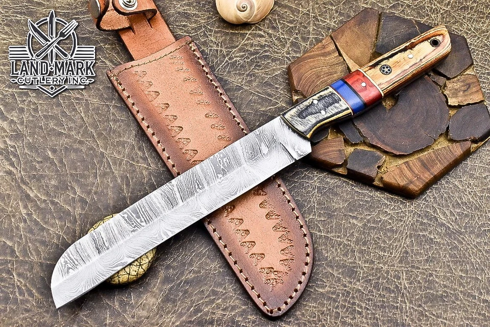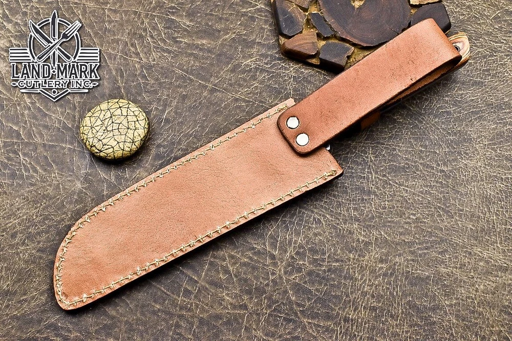 Custom Hand Made DAMASCUS STEEL KITCHEN CHEF KNIFE WITH PAKKA WOOD HANDLE We offer a shipping discount for More then one purchased . And discount will be apply on combine invoice, Discount will not apply on separate payment. ITEM DETAILS OVER ALL LENGTH 14.0 inches long (Approx) HANDLE LENGTH 5.0 inches long (Approx) BLADE LENGTH 9.0 inches long (Approx) BLADE HARDNESS 58-60 HRC Which Holds The Sharp Edge For Long Time. HANDLE PAKKA WOOD COVER LEATHER SHEATH This Awesome custom made KNIFE has a nice hand forged with the combination of 4340 & 1080 steel. HOW OUR DAMASCUS IS MADE: All our Damascus is real and not just an acid etch. Damascus is a mixture of 1080HC and 4340 nickel carbon. You heat them up together and then fold the bar over and over to get the desired layers, ours are 396 layers. Then you burn the blade in acid, and it turns the nickel satin color and the high carbon turns blackish gray. This is how the layers are exposed to show the layers of the new steel created coined "Damascus". All Damascus is acid etched to show the layers. If you high polish the metal it will be shinny satin like all steels. Only after you burn the sides of the blade with acid do you see the layers of the two steels. Makes sense? After we make our knives we high polish the handles and put an edge on the blade. The high polishing buffs off the acid burned layer of the handle, and the blade edge is sharpened and the acid burned edge becomes satin. You can re-burn the tang of the blade near the handles and the edge of the blade and it will show the layers once more. All our knives are hand made, durable and unique ***** YOU WILL RECEIVED THE SAME KNIFE Qality Standards Our Damascus blades are made from high quality non-stainless steels which rival or exceed any Damascus blade made from the 10 series with 4340. Our Damascus combination has taken years to perfect and has been tested under a variety of application which will offer professional performance in categories of toughness, strength (lateral stress) and edge honing and holding ability. In a 5 spot Rockwell test our blades will average near or close to 58 which offers a perfect balances between its toughness and strength.Our blades due to carbon content need to be regularly treated with wax and/or 3 in 1 oil to maintain its superior quality. Questions if you have any question feel free to send us message we aim to answer all questions within 24 hours Feedback If you are not satisfied with our service please contact us before leaving any negative or natural feedback. We will resolve all issues as quickly as possible. Disclaimer We are not responsible for any injuries associated with the use of our tools. Our products are intended for legal use only by responsible buyers. Therefore, we will not sell our products to anyone under the age of 18. Before bidding please check your country laws as some countries Custom don't allow this. If your purchase is held by Custom Authorities in your country/State we will not be responsible for that and no refund will be issued Shipping We offer a 20% shipping discount for More then one purchased . And discount will be apply on combine invoice, Discount will not apply on separate payment We ship within 24 hours after receiving complete payment but this can be delayed due to week ends or Governments and Religious Festivals . . This is beyond our control and we apologize for this inconvenience. Precautions Our Tools are very sharp so open and use them very carefully We are not responsible for any injuries associated with the use of our tools Tips to Care knife 1. NEVER STORE YOUR KNIFE FOR LONG TIME IN LEATHER SHEATH. 2. LEATHER CAN ABSORB WATER, WHICH WILL RUST THE KNIFE. 3. ALWAYS CLEAN THE BLADE AFTER USING WITH OIL OR WAX