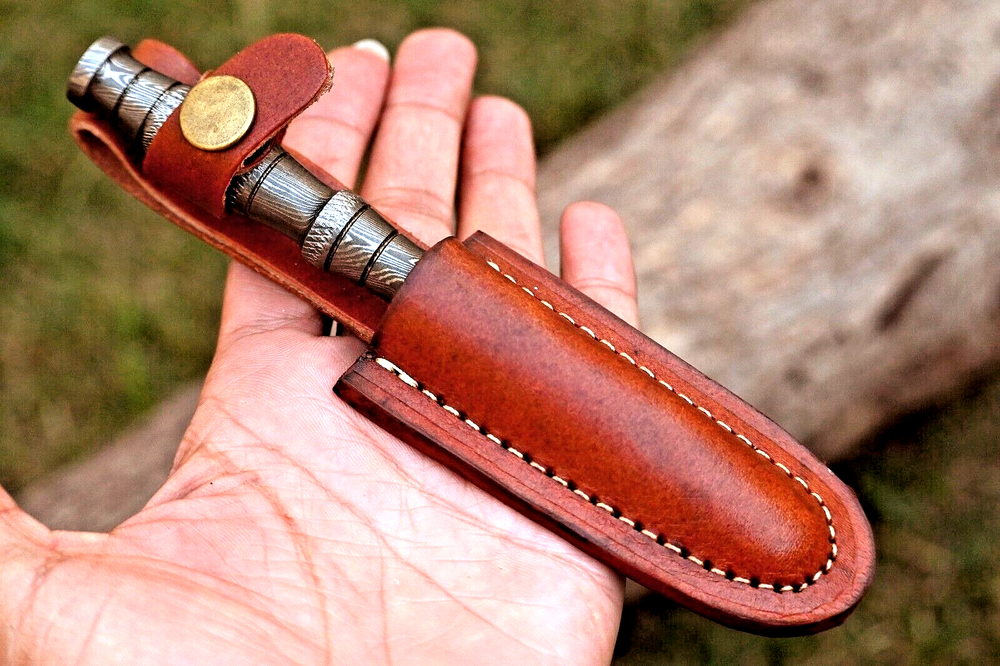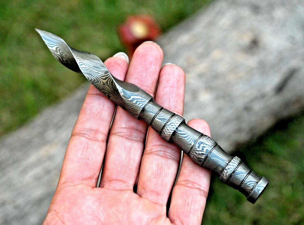 " FULL TANG " CUSTOM HAND MADE FORGED DAMASCUS STEEL KRIS BLADE DAGGER BOOT THROWING KNIFE Damascus Steel Handle This superb design knife is hand forged. Blade of this knife has a nice file work and is made of 512 layers of 4340 stainless steel and 1075 high carbon steel and hardness 55-58 HRC . This robust knife is lab tested under intense conditions, the balance and shape of this knife ensures perfect grip. Overall Length: 6.25" Inches Blade Length: 3" Inches Handle Length: 3.25" Inches Damascus Design: Twist Pattern Layers:512 Package Includes: with Leather Sheath Warning: Keep fingers clear of blades. Store away from children.
