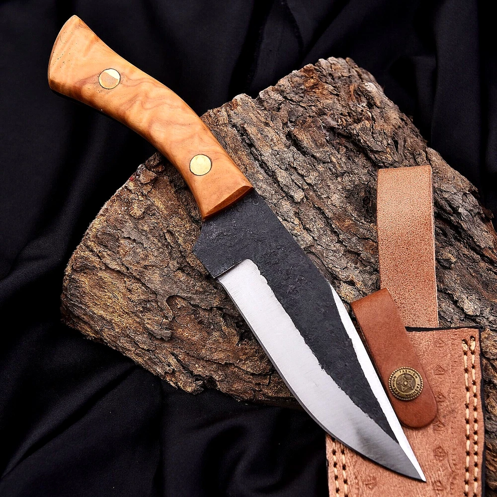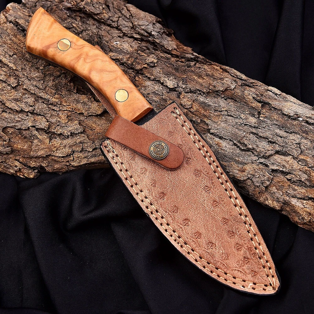 CUSTOM HAND MADE HIGH CARBON STEEL EVERY DAY CARRY SKINNER HUNTING KNIFE Wood Handle This superb design knife is hand forged. Blade of this knife has a nice file work. Thebalance and shape of this knife ensures perfect grip. OverallLength: 10.6” Inches BladeLength: 6 ”Inches HandleLength: 4.6 ”Inches Package Includes: with Leather Sheath Warning: Keep fingers clear of blades. Store away fromchildre