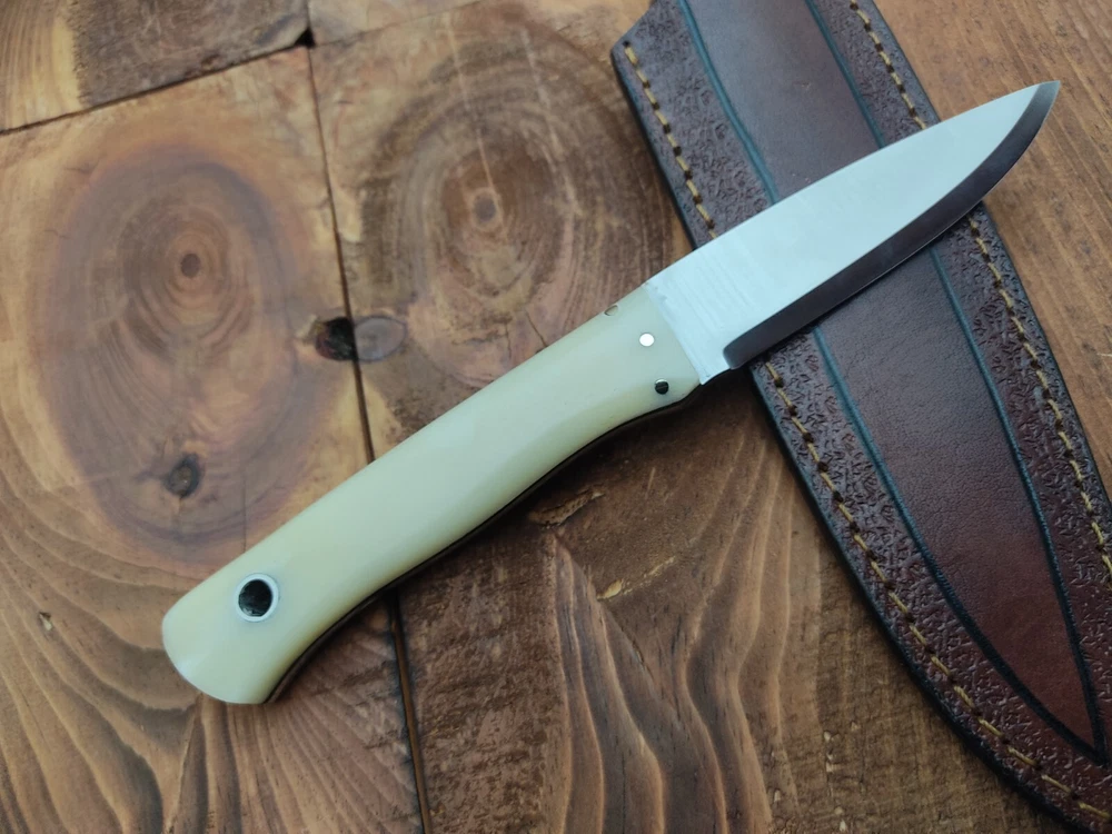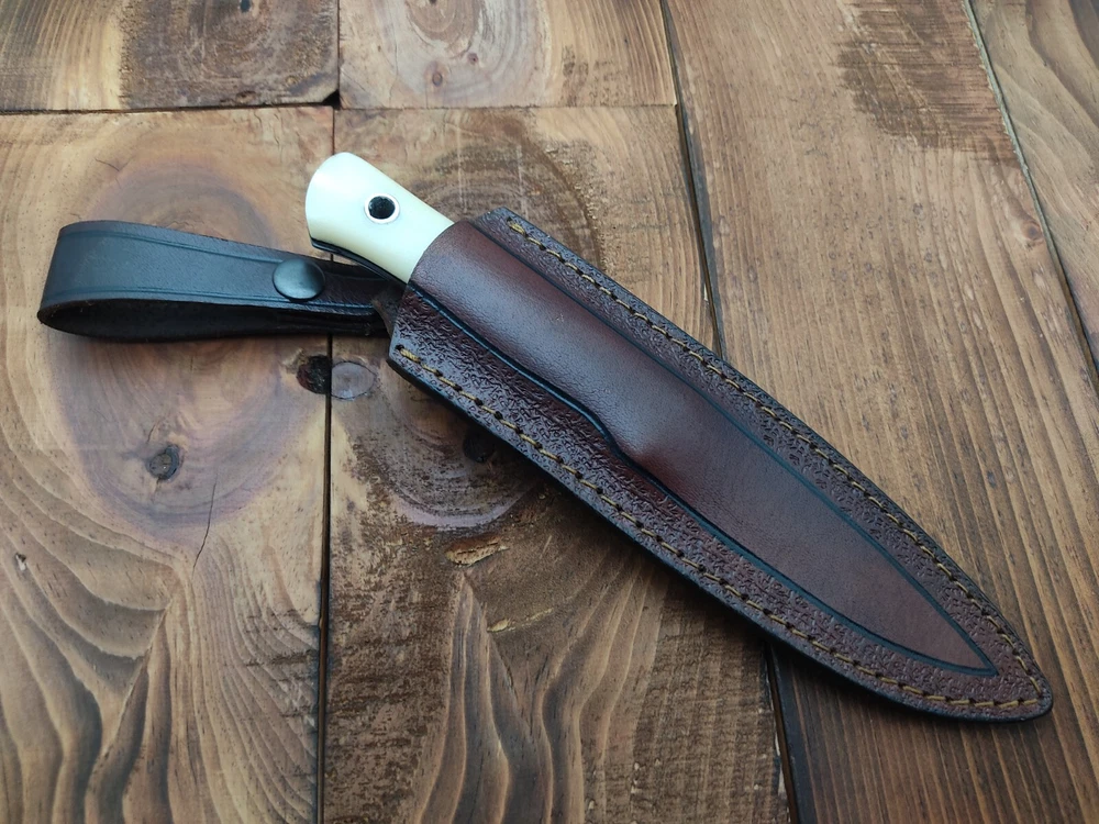 ITEM # HM-168 Fabulous Unique THUNDER STORKE Custom MADE KNIFE Custom Handmade Forged 1095 High Carbon Steel Scandi Grind BushCraft Camping Survival Outdoor Vintage Skinner Hunting Fixed Blade Knife Best For Gift High Carbon Steel holds an edge very well and is optimum for hunting and skinning use as well as tactical and military tasks. The steel is very corrosive and will tarnish and turn the blade black when blood and acidic liquids or chemicals get onto the blade. The blade will still work fine, but will lose the satin color when it was new. Bone Handle 1095 High Carbon Steel Blade RAZOR SHARP Gorgeous Handle & Blade 9" Long | Blade is 4.2" Long | Handle is 4.6 " 4 mm Thick Blade | Beautiful Worked Blade & Handle WORK OF ART This prestigious unique HUNTING knife was designed and custom made by THUNDERSTORKE . Blade was given excellent heat treatment and Rockwell hardness of the blade 58 to 60 . PAYMENT: As Per Ebay Requirement DISPATCH TIME: 2 to 3 DAYS AFTER RECEIVING YOUR PAYMENT COURIER / SHIPPING: When we print the postage label there is a number that is on the label. This number is called a "Delivery Confirmation Number". The post office is not like UPS or FEDX where they scan the mail at the receipt point and then track it to your door. What the post office does is scan the item when it is delivered (if they choose to) and then you will see that it was delivered. Sometimes they do scan it when you drop it off, but this is rare. If they did scan it at a sorting facility, you see it moving across the USA. But this is very rare. - eBay confuses the buyer with the "tracking number" next to the post offices "delivery confirmation number" when in reality there is not a tracking number. You can ask this at the post office and they will concur. We print labels off the internet using eBay's USPS shipping program and then we drop the packages off at the post office, similar if you were mailing a stamped letter. The post office is supposed to scan it "received" and they do this about 50% of the time. But sometimes they do not scan them. Do not worry, we did mail the item and it is on it's way to you. COMBINE SHIPPING OFFER: We Do Combine Shipping Discount On Multiple Purchase are as Follow. BUYER FEEDBACK AND Detailed Seller Ratings (DSR) SCORES : We spend a lot of time trying to describe our knives 100% perfect in detail, but sometimes we miss things. In the event that we missed something, upon inspection of the item when you receive it, let us know by contacting us via the "Contact Seller" link (next to our user ID profile) and allow us to solve your problem before leaving us low DSR scores (Detailed Seller Ratings) or neutral and negative feedback. - Help us, help ourselves to do better, with our future business on eBay by allowing us to correct our faults and fix the sale with you to a positive. We need to keep our scores high to continue to offer our great knives for sale on eBay. KNIFE CARE and SHEATHS : Leather sheaths pull moisture out of the air and tend to rust knife blades if not stored properly. When you are done using the knife, store it away from the leather sheath and put gun oil, Seal 1, or a similar protectant on the blade and store. Damascus, 1095HC, and D2 can rust and develop stains if not lubricated. AGE RESTRICTION: WE DON'T SELL KNIVES TO ANY ONE WHO IS UNDER AGE . GUARANTEE: If you are not happy with your purchase, we offer you a peace of mind guarantee if you return the product within 7 working days. We will refund your money back immediately ON RECEIVING THE KNIFE BACK IN ORIGINAL CONDITION. DELIBERATE TAMPERING WITH THE PRODUCT OR MISUSE WILL NOT QUALIFY FOR THE REFUND. SHIPPING CHARGES ARE NON-REFUNDABLE. DISCLAIMER: WHEN YOU ARE BIDDING ON THIS KNIFE YOU ARE CONFIRMING US THAT YOUR AGE QUALIFIES FOR THIS PURCHASE AND THIS IS A LEGAL PURCHASE. TAKES NO RESPONSIBILITY FOR ANY ILLEGAL PURCHASE Thank you, - Props in the Photos are NOT INCLUDED. Knife & Sheath ONLY .