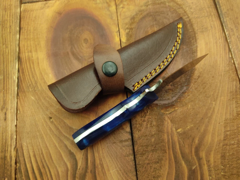 ITEM # HM-132 Fabulous Unique THUNDER STORKE Custom MADE KNIFE Custom Handmade Forged 12c27 Stainless Steel Camping Survival Outdoor Vintage Pocket Hunting Fixed Blade Knife 12c27 High Carbon Stainless Steel holds an edge very well and is optimum for hunting and skinning use as well as tactical and military tasks. The steel is very corrosive and will tarnish and turn the blade black when blood and acidic liquids or chemicals get onto the blade. The blade will still work fine, but will lose the satin color when it was new. Resin Handle 12c27 High Carbon Stainless Steel Blade RAZOR SHARP Gorgeous Handle & Blade 6.2" Long | Blade is 2.7" Long | Handle is 3.3" 4 mm Thick Blade | Beautiful Worked Blade & Handle WORK OF ART This prestigious unique HUNTING knife was designed and custom made by THUNDERSTORKE . Blade was given excellent heat treatment and Rockwell hardness of the blade 58 to 60 . PAYMENT: As Per Ebay Requirement DISPATCH TIME: 2 to 3 DAYS AFTER RECEIVING YOUR PAYMENT COURIER / SHIPPING: When we print the postage label there is a number that is on the label. This number is called a "Delivery Confirmation Number". The post office is not like UPS or FEDX where they scan the mail at the receipt point and then track it to your door. What the post office does is scan the item when it is delivered (if they choose to) and then you will see that it was delivered. Sometimes they do scan it when you drop it off, but this is rare. If they did scan it at a sorting facility, you see it moving across the USA. But this is very rare. - eBay confuses the buyer with the "tracking number" next to the post offices "delivery confirmation number" when in reality there is not a tracking number. You can ask this at the post office and they will concur. We print labels off the internet using eBay's USPS shipping program and then we drop the packages off at the post office, similar if you were mailing a stamped letter. The post office is supposed to scan it "received" and they do this about 50% of the time. But sometimes they do not scan them. Do not worry, we did mail the item and it is on it's way to you. COMBINE SHIPPING OFFER: We Do Combine Shipping Discount On Multiple Purchase are as Follow. BUYER FEEDBACK AND Detailed Seller Ratings (DSR) SCORES : We spend a lot of time trying to describe our knives 100% perfect in detail, but sometimes we miss things. In the event that we missed something, upon inspection of the item when you receive it, let us know by contacting us via the "Contact Seller" link (next to our user ID profile) and allow us to solve your problem before leaving us low DSR scores (Detailed Seller Ratings) or neutral and negative feedback. - Help us, help ourselves to do better, with our future business on eBay by allowing us to correct our faults and fix the sale with you to a positive. We need to keep our scores high to continue to offer our great knives for sale on eBay. KNIFE CARE and SHEATHS : Leather sheaths pull moisture out of the air and tend to rust knife blades if not stored properly. When you are done using the knife, store it away from the leather sheath and put gun oil, Seal 1, or a similar protectant on the blade and store. Damascus, 1095HC, and D2 can rust and develop stains if not lubricated. AGE RESTRICTION: WE DON'T SELL KNIVES TO ANY ONE WHO IS UNDER AGE . GUARANTEE: If you are not happy with your purchase, we offer you a peace of mind guarantee if you return the product within 7 working days. We will refund your money back immediately ON RECEIVING THE KNIFE BACK IN ORIGINAL CONDITION. DELIBERATE TAMPERING WITH THE PRODUCT OR MISUSE WILL NOT QUALIFY FOR THE REFUND. SHIPPING CHARGES ARE NON-REFUNDABLE. DISCLAIMER: WHEN YOU ARE BIDDING ON THIS KNIFE YOU ARE CONFIRMING US THAT YOUR AGE QUALIFIES FOR THIS PURCHASE AND THIS IS A LEGAL PURCHASE. TAKES NO RESPONSIBILITY FOR ANY ILLEGAL PURCHASE Thank you, - Props in the Photos are NOT INCLUDED. Knife & Sheath ONLY .