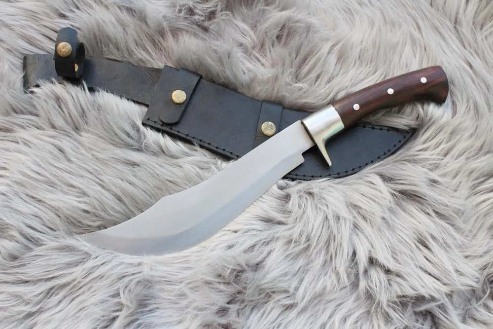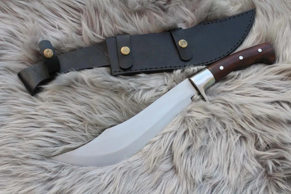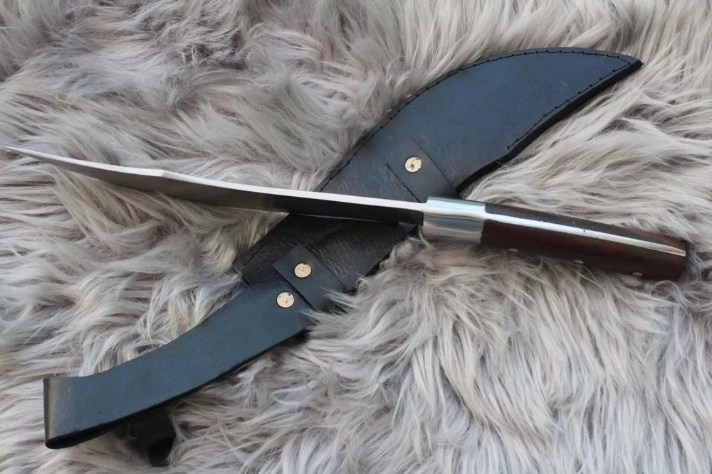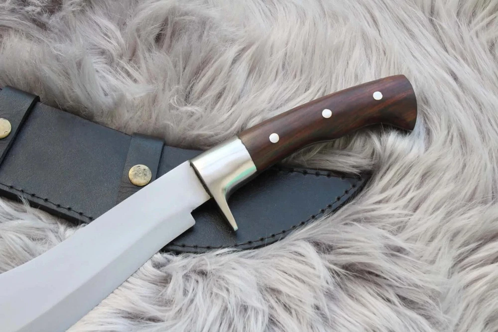 Item details Highlights Made by HAFIZ CRAFTS Supplies for making crafts Materials: Blade material: Carbon steel; Handle material: Wood -Handforged in PAKISTAN -10 inches Semi-Polished Blade made of 5160 leaf spring of Truck with Balance tempered. -6 inches Full tang Handle Made of Rosewood -Comes with Scabbard -Width in belly-37 millimeters -Thickness in spine-2-4millimeter -Overall weight including sheath- 2 IBS Crafted for those who appreciate the art of knife-making, this Custom Handmade Carbon Steel Blade Bowie Knife is a testament to precision and durability. With a full tang construction, the blade is designed to provide maximum strength and balance. The elegant wood handle, complemented by a silver-colored blade, ensures a comfortable grip for both left and right-handed users. This versatile 10-inch hunting knife features a sharp plain edge clip point blade, ideal for a wide range of outdoor activities, from hunting and camping to survival situations. It comes with a protective sheath to safeguard the blade when not in use. Every aspect of this knife, from its original design to its meticulous craftsmanship, reflects the commitment to quality synonymous with HAFIZ CRAFTS .