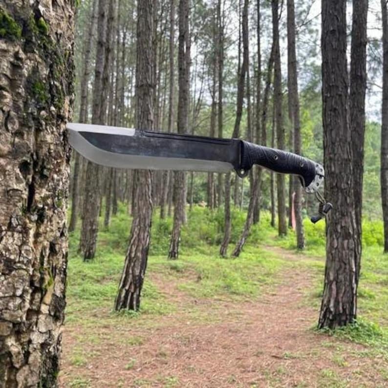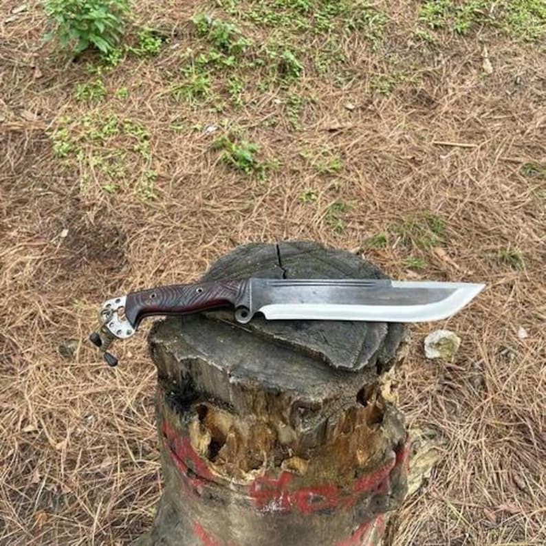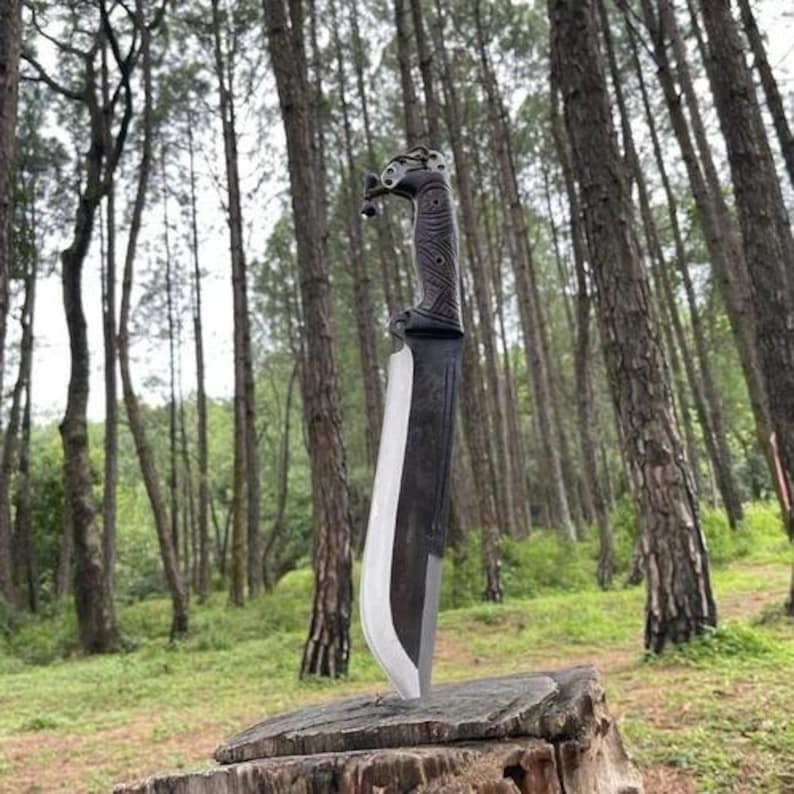 Blade Edge: Plain Handle Material: Wood Type: Bowie Knife, Hunting, Survival Blade Type: Straightback Brand: HAFIZ CRAFTS Original/Reproduction: Original Blade Length: 16-Inches Tang: Full Blade Color: Silver Handmade: Yes Blade Material: Carbon Steel Country of Origin: Pakistan Dexterity: Ambidextrous Features: Sheath Included, Lanyard Hole