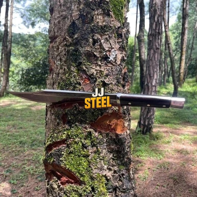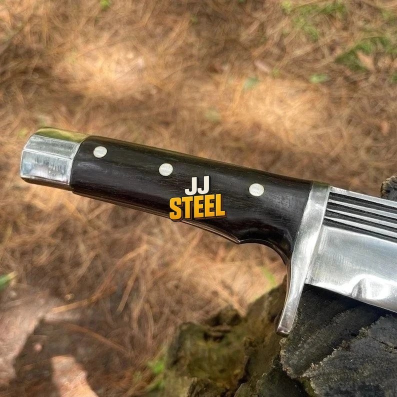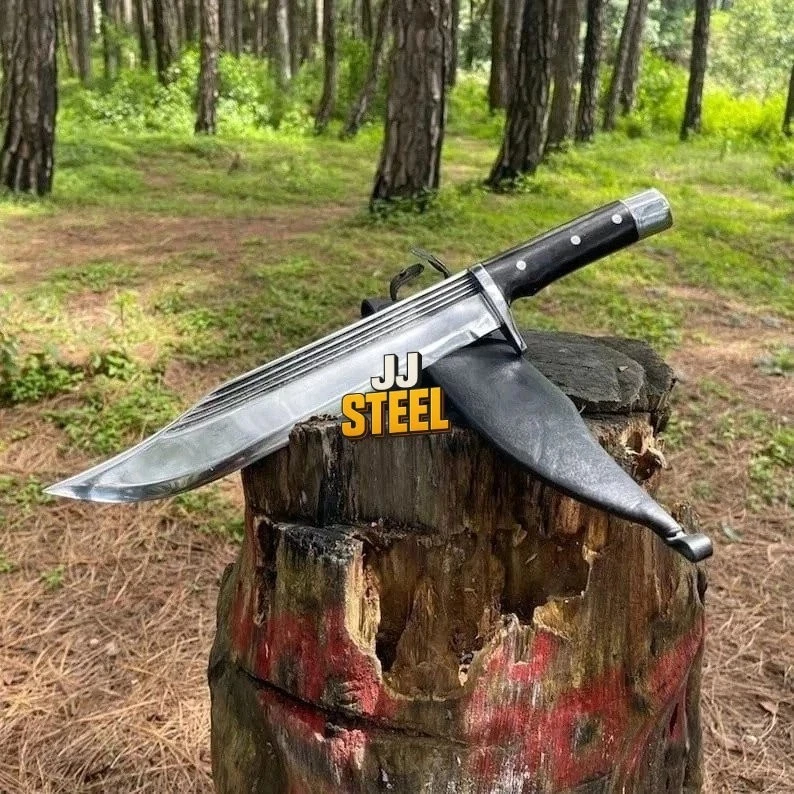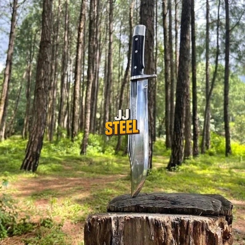 Handle Material: Wood Blade Type: Clip Point Brand: jj-steel Type: Bowie Knife Country of Origin: Pakistan Tang: Full Blade Material: Carbon Steel Dexterity: Ambidextrous Features: Sheath Included Blade Length: Over 5in. Year: This Year Latest Original/Reproduction: Original Handmade: Yes Blade Edge: Plain Blade Color: Silver