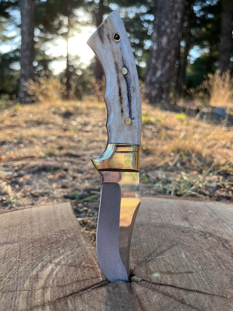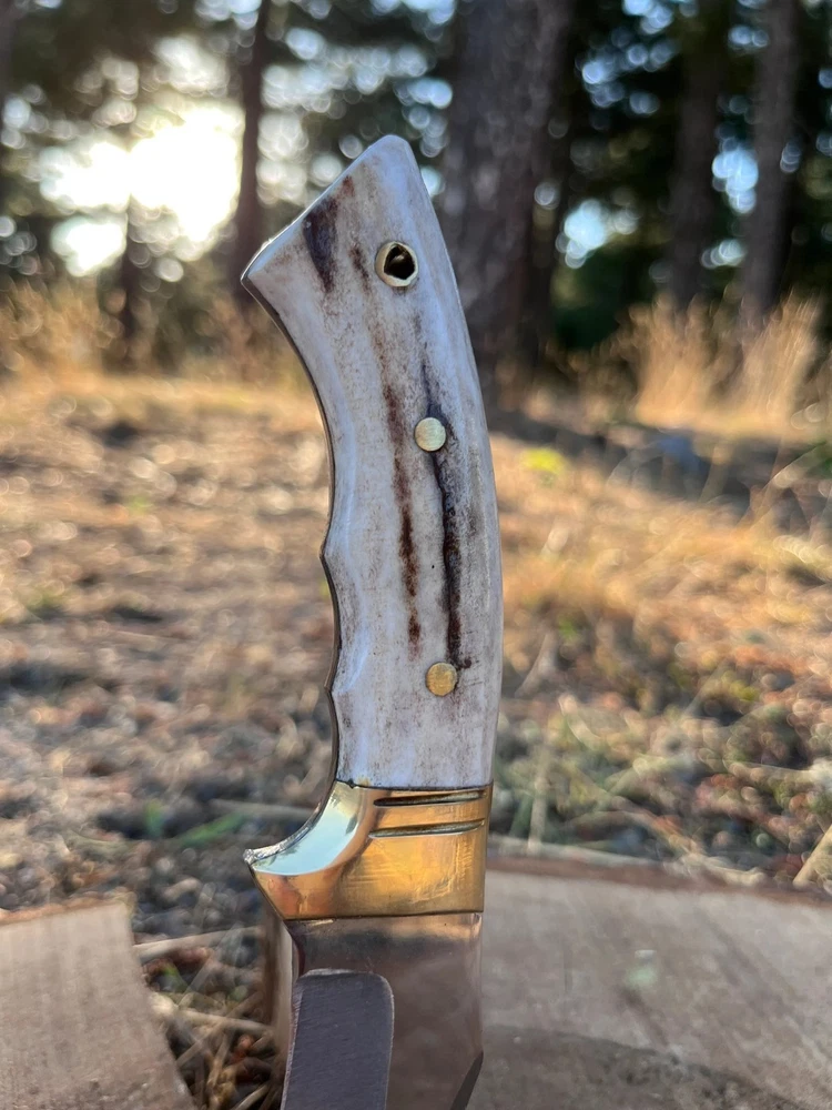 Handle Material: Stag/Antler Handmade: Yes Blade Length: 3.5 - 4in. Dexterity: Ambidextrous Original/Reproduction: Original Type: Boot, Bowie, Bowie Knife, Combat, Everyday Carry, Hunting, Survival Blade Edge: Plain Country of Origin: Pakistan Blade Color: Silver Blade Material: Carbon Steel Blade Type: Drop Point Year: This Year Latest Features: Sheath Included Tang: Full Brand: jj-steel