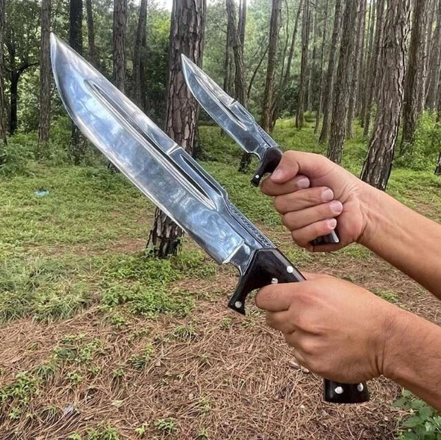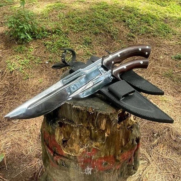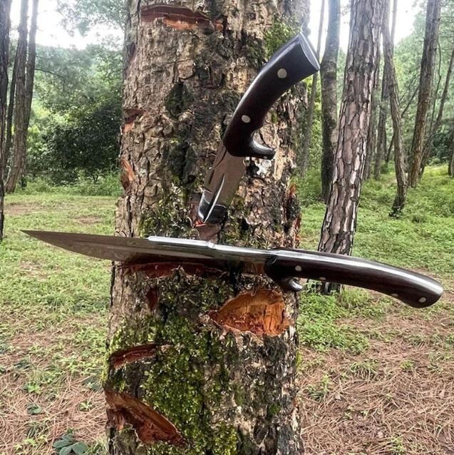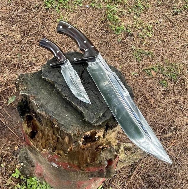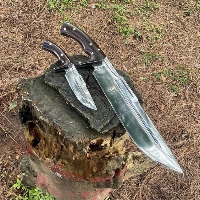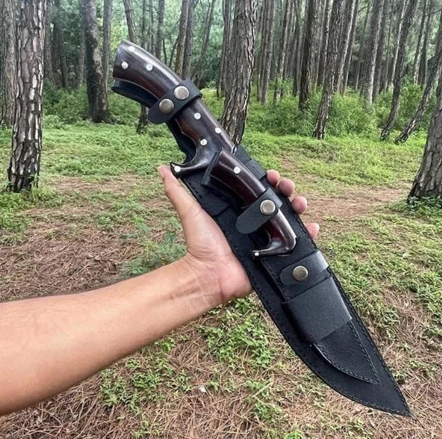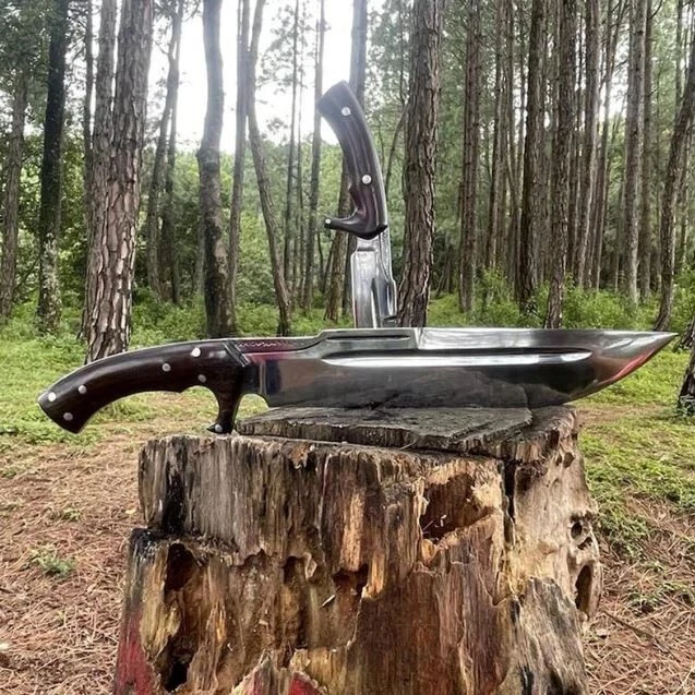 Blade Edge: Plain Tang: Full Country of Origin: Pakistan Blade Length: Over 5in. Brand: Aaira Year: 2025 Blade Material: Carbon Steel Type: Boot, Bowie, Bowie Knife, Combat, Everyday Carry, Hunting, Survival, Throwing Original/Reproduction: Original Dexterity: Ambidextrous Blade Type: Clip Point Handle Material: Wood Features: Sheath Included Blade Color: Silver Handmade: Yes