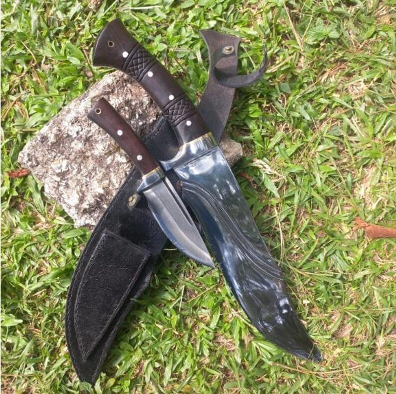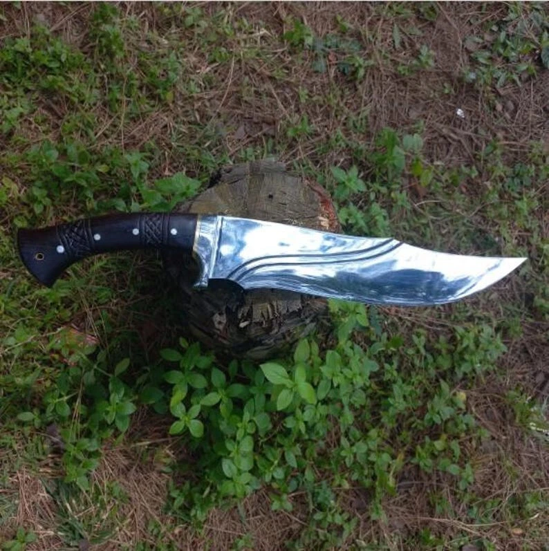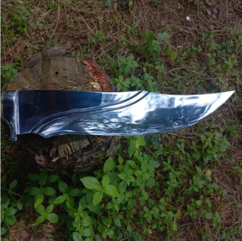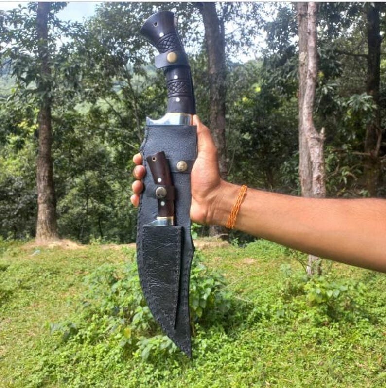 Tang: Full Features: Lanyard Hole, Sheath Included Country/Region of Manufacture: Pakistan Original/Reproduction: Original Blade Length: 12-Inches Handmade: Yes Type: Bowie Knife, Hunting Blade Material: Carbon Steel Dexterity: Ambidextrous Handle Material: Wood Brand: HAFIZ CRAFTS Blade Type: Clip Point Blade Edge: Plain Blade Color: Silver