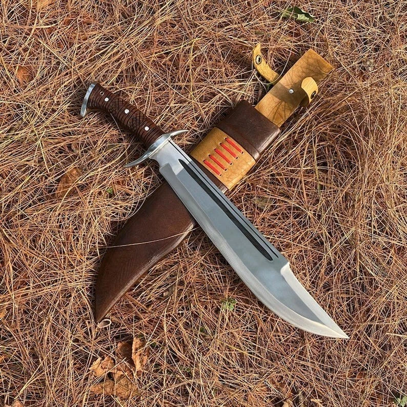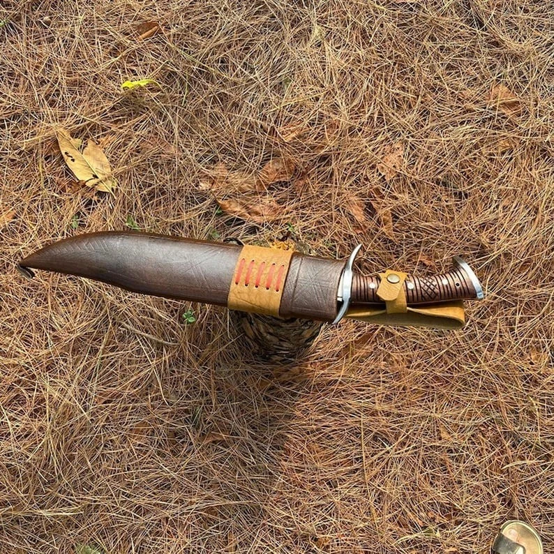 Item details Highlights Designed by Hafiz Crafts Supplies for making crafts Materials: Blade material: Carbon steel; Handle material: Wood Specifications: Blade Length: 16 inches Handle Length: 6 inches The Custom Handmade Carbon Steel Blade Tactical Bowie Knife is a versatile and durable tool designed for hunting, camping, and other outdoor activities. Handcrafted in Pakistan by Hafiz Crafts, this Bowie knife features a 16-inch full tang blade made of carbon steel with a clip point design. The ambidextrous knife has a plain edge and a lanyard hole for convenient carrying, and it comes with a sheath for safe storage. The handle is made of wood, adding a traditional and rustic touch to this original and functional piece. This custom handmade tactical Bowie knife is crafted by Hafiz Crafts in Pakistan, featuring a full tang carbon steel blade with a clip point design. The 16-inch blade has a plain edge and a silver color, making it ideal for hunting and camping activities. The ambidextrous knife has a wooden handle and includes a lanyard hole and sheath for convenience. This unique and original piece is perfect for collectors and outdoor enthusiasts seeking a high-quality and handcrafted tool for their adventures.