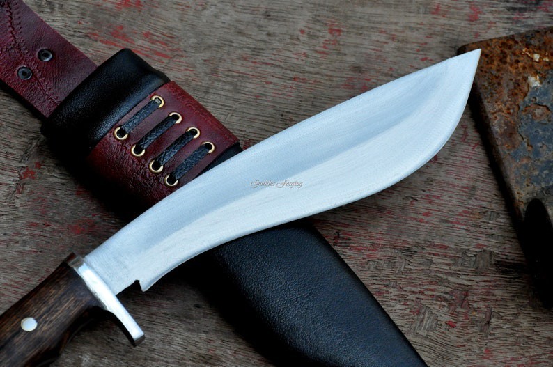 Item details Highlights Designed by HAFIZ CRAFTS Supplies for making crafts Materials: Blade material: Carbon steel; Handle material: Wood -Hand forged in PAKISTAN -10 inches long Blade, made of carbon steel-semi polished Blade , Best for heavy duties. -5.5 inches full tang handle made of Rosewood -Sheath included -Free Personalization (Name, logo or Text Engraving) The Custom Handmade Carbon Steel Blade Eagle Bowie Knife by HAFIZ CRAFTS is a high-quality hunting and camping knife with a 10-inch silver blade made of carbon steel. This ambidextrous knife features a drop point blade type, full tang construction, and a wood handle for a durable and reliable tool. It also includes a lanyard hole and comes with a sheath for easy portability. Handmade in Pakistan, this original hunting and Bowie knife is perfect for outdoor enthusiasts looking for a custom and durable blade.