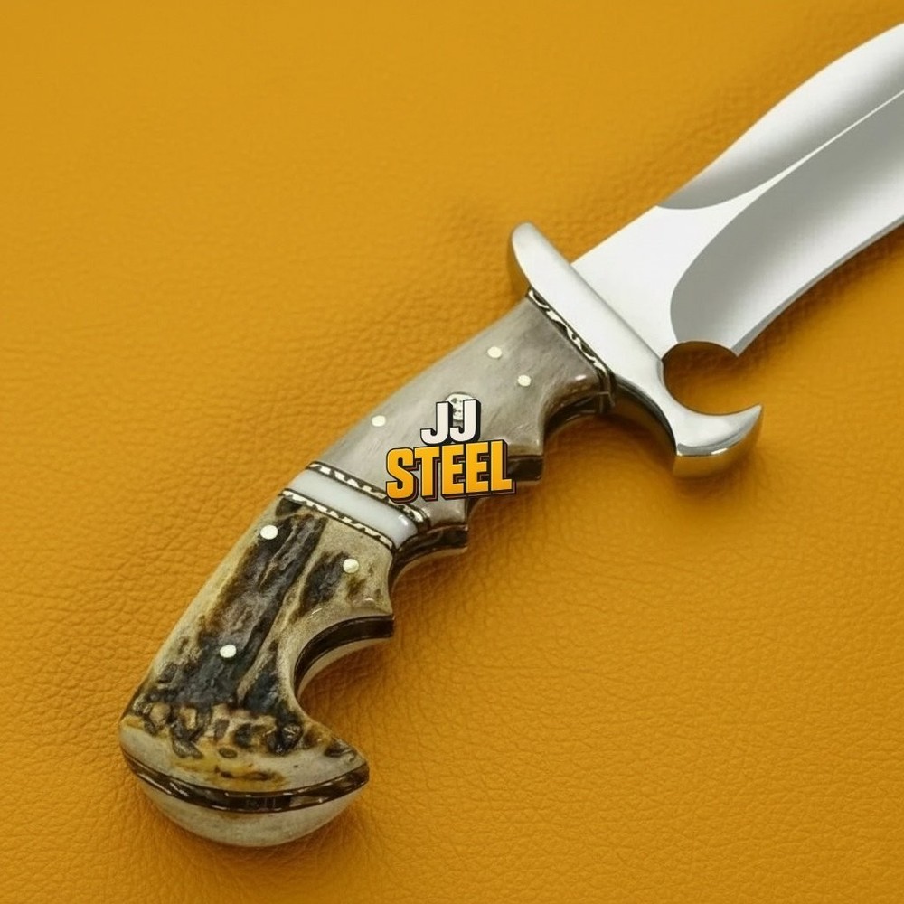 CU STOM HANDMADE CARBON STEEL BOWIE KNIFE '' LEATHER SHEATH INCLUDED MADE WITH PURE COW SKIN '' " OUR ALL PARCELS ARE DUTY / TARIFF PAID YOU DON'T NEED TO PAY TAX WHILE RECEIVING YOUR PACKAGE WE WILL PAY FROM OUR SIDE, BUT DELIVERY WILL TAKE 3-4 MORE DAYS AS REGULAR DELIVERY TIME, AND PARCEL WILL START TRACKING AFTER REACHING TO YOUR COUNTRY " BEST GIFT FOR YOUR LOVED ONCE BEST GIFT FOR HER ANNIVERSARY GIFT CHRISTMAS GIFT WEDDING GIFT PRODUCT SPESIFICATION Blade Material: Carbon Steel Handle Material: Stag\Antler Overall Length: 15.00'' inches Blade Length: 10.00'' inches Handle Length: 5.00'' inches With leather Sheath DESCRIPTION This superb design knife is hand forged.?The blade of this knife has a nice file work and is made of 512 layers of stainless steel and high carbon steel with a hardness of 57-59 HRC. This robust knife is lab tested under intense conditions, the balance and shape of this knife ensure perfect grip. SHIPPING DHL, USPS TRACKABLE Worldwide Shipping SPECS Best Gift For Your Love Once & Hunter Friends. Bowie Knife, Hunting Knife, Camping Knife, Bushcraft Knife, Survival Knife, Gift Knife, Damascus Steel Knife, Leather Sheath? RESTRICTION You Must Be Over 18 Years Of Age To Purchase These Products, The Buyer is Fully Responsible For Local Laws And Regulations Concerning the Purchase And Possession Of Knives, Swords, And Other Cutlery Tools, By Making A Purchase You Are Confirming Our Age Policy. HAVE A SAFE SHOPPING PLEASE LEAVE A HONEST FEEDBACK