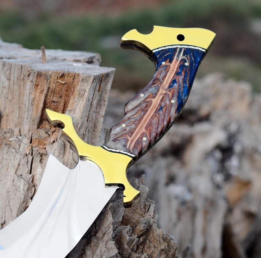 Product Details: Knives Overall Length: Approximately 15.00"inch Blade Length: 10.00"inch Handle Length: 5.00"inch Handle Material: Resin & Brass 4 mm Thick Blade Approx Note: Custom & Bulk Orders Also Accepted PAYMENTS I am using stock knife pictures, you “ll receive little bit vary instead the pictures, carbedn . Damascus and D2 steel & Hand Mateial are different. Thank you Shipping We Used The DHL Ship from Pakistan QUESTION If you have any question feel free to send us message we aim to answer all questions within 1 Day. FEEDBACK If you are not satisfied with our service please contact us before leaving any negative or natural feedback. We will resolve all issues as quickly as possible. SHIPPING Buyers other than USA & CANADA . Please contact us to know precise shipping cost. We offer a 25% shipping discount for two items purchased and a 40% shipping discount for three or more items purchased.Due to region regulations we are not able to ship to Israel , Russia Federation . This is beyond our control and we apologize for this inconvenience. SHIPPING SERVICE We normally use USPS. DISCLAIMER We are not responsible for any injuries associated with the use of our tools. Our products are intended for legal use only by responsible buyers. Therefore, we will not sell our products to anyone under the age of 18.Before bidding please check your country laws as some countries Custom don't allow this.If your purchase is held by Custom Authorities in your country/State we will not be responsible for that and no refund will be issued .