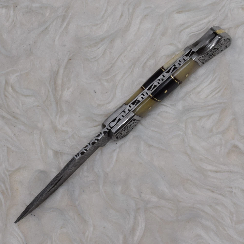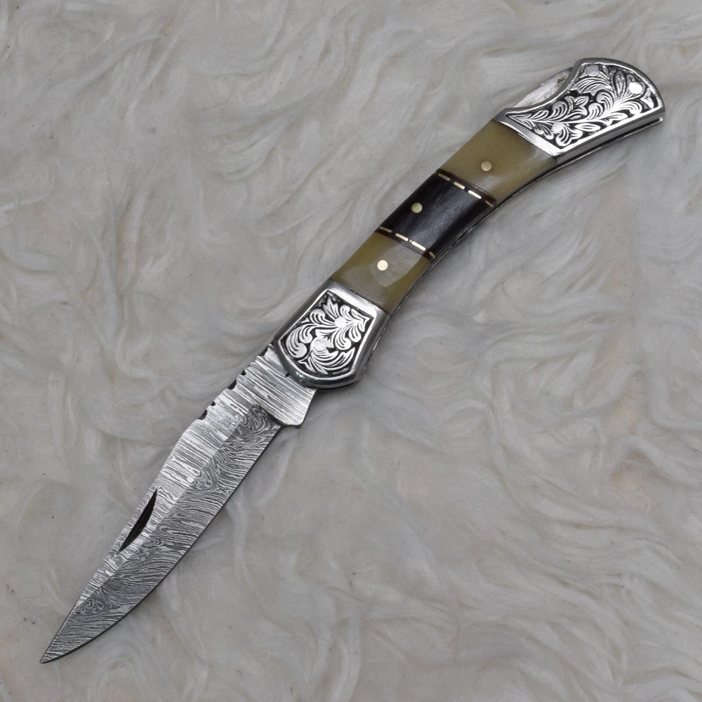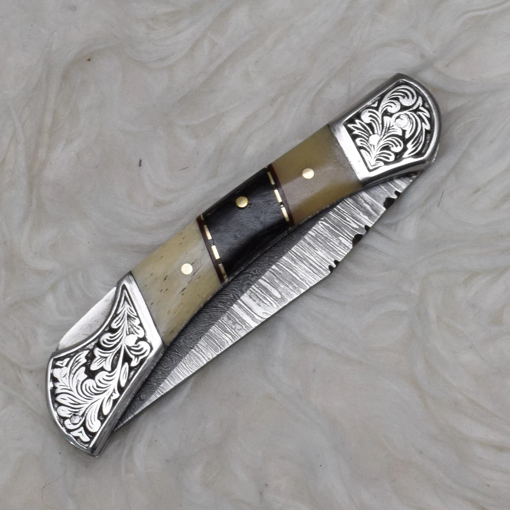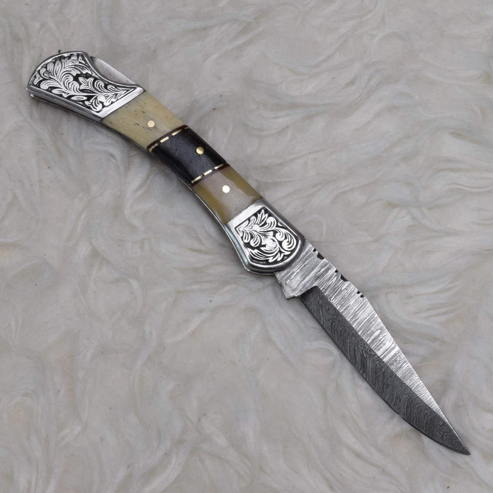 Custom Handmade Damascus Blade Pocket Knife Folding Knife Bone Handle # H-1120