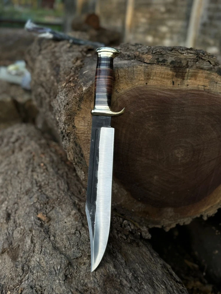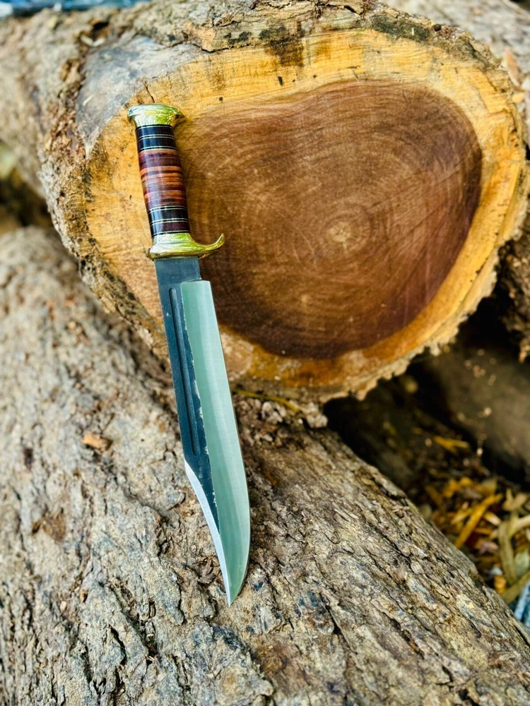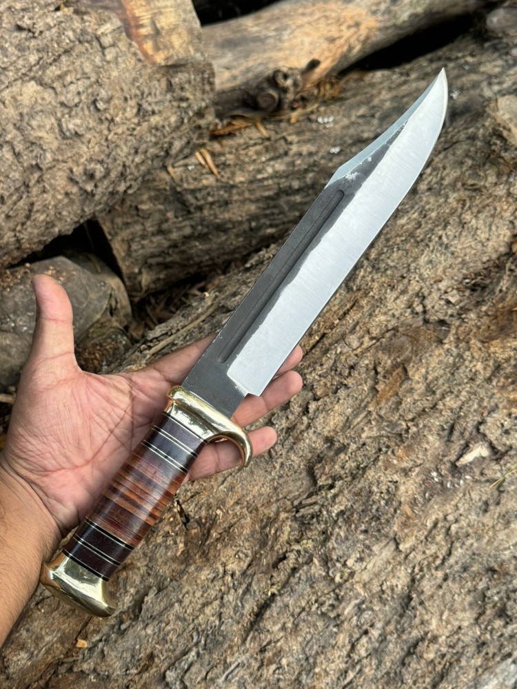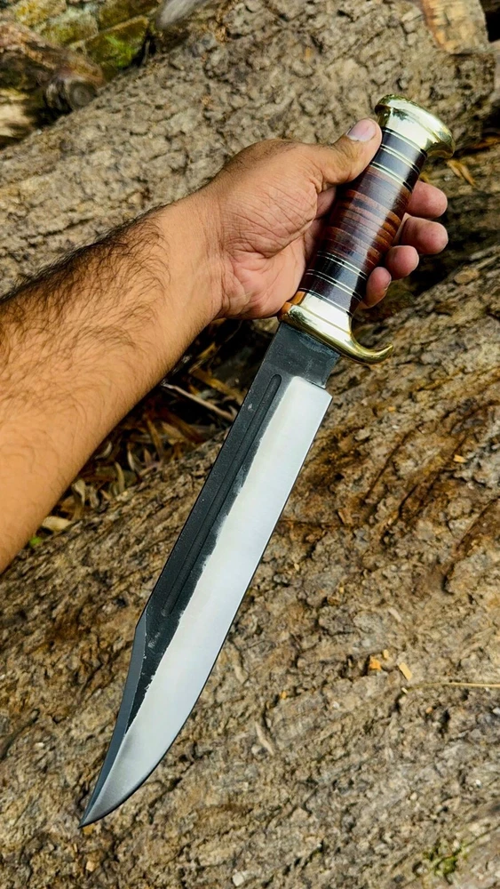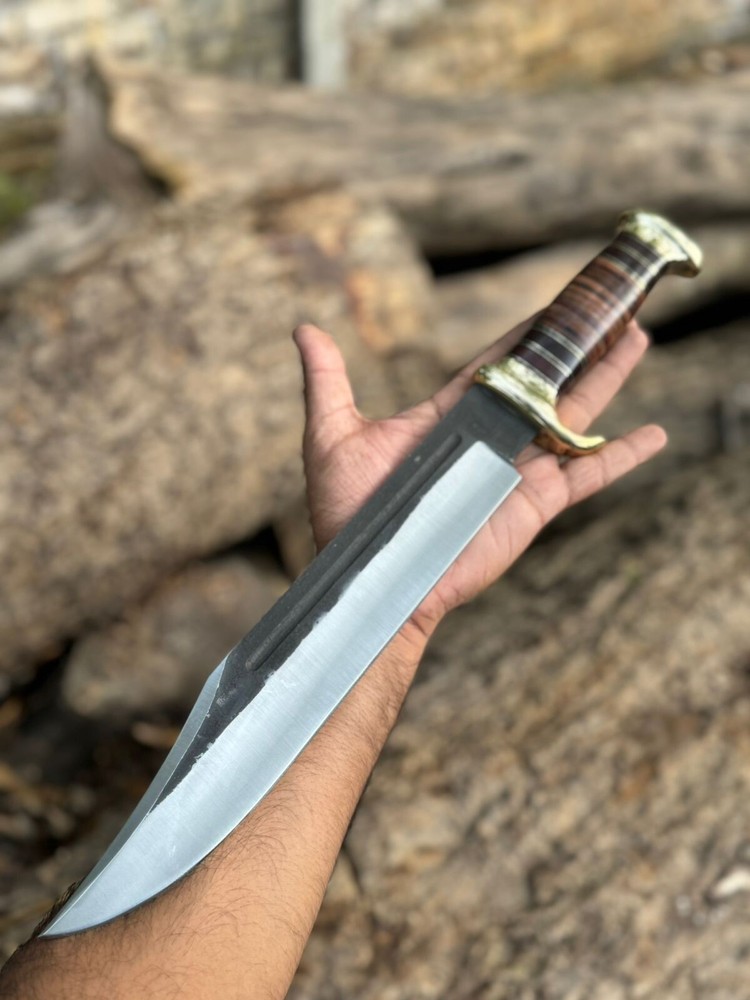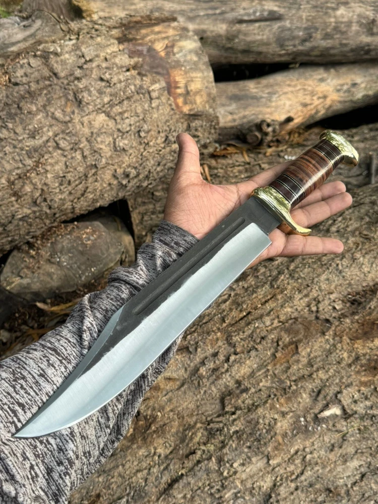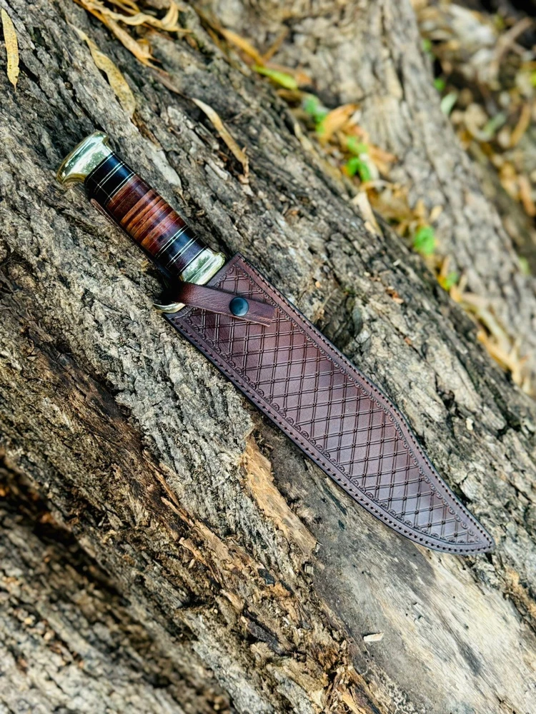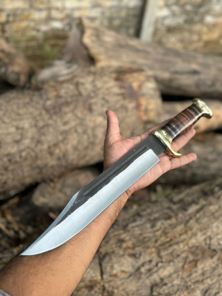 Handmade Damascus hunting knife with Rosewood handle Groomsman gift wedding gift Bowie knife birthday gift anniversary gift camping knife This Beautiful knife have Razor sharp cutting edge come with leather sheath. It can be used in kitchen for different types of work you can also take it outdoor activities Overall Length : 15 inches Blade Length: 10" inches Handle Length: 5" Inches Knife Type: Big bowie knife HRC : 55-58 Handle Material: Handle material is Rosewood Damascus Double Finger guard. knives are handmade you will get the same knife as in the photo. A slight difference can be there in color and patterns because these are handmade items and we use natural material. The knife have perfect grip sharp cutting edge and beautiful shape which makes knives more durable. Precautions Tools are very sharp. Please use and keep it carefully. It may harm you. Tips To Care Knife 1.Clean your knife with Petrol or Ethanol after use. 2. Apply oil on the blades after cleaning & using the knife. 3.Never store knife in sheath for long time AGE RESTRICTION YOU MUST BE 18+ TO BUY PRODUCTS. DESCLAMER IF you have any issue regarding products and services you can always contact us through email and message box we will try to resolve your issue ASAP SHIPPING: WE MOSTLY USED SHIPPING SERVICES DHL/USPS IF THE CUSTOMER ADDRESS IN REMOTE AREA THEN CUSTOMER MUST HAVE TO PAY EXTRA CHARGES WHICH WILL B $70 TO GET TRACKING NUMBER CUSTOMER MUST HAVE TO PAY THESE CHARGES WE DO NOT SEND PARCEL ON POBOX ADDRESS