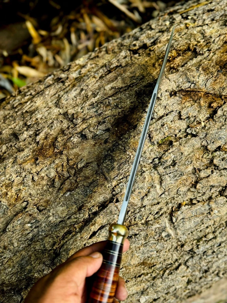 This is pretty cool! It is definitely as long and heavy as you’d expect. Straight, lethal (not actually sharp but lethal in a warrior sense), and will be perfect as an award once I get it Paracord wrapped. Great price, nice finish, and no damages. Thank you!