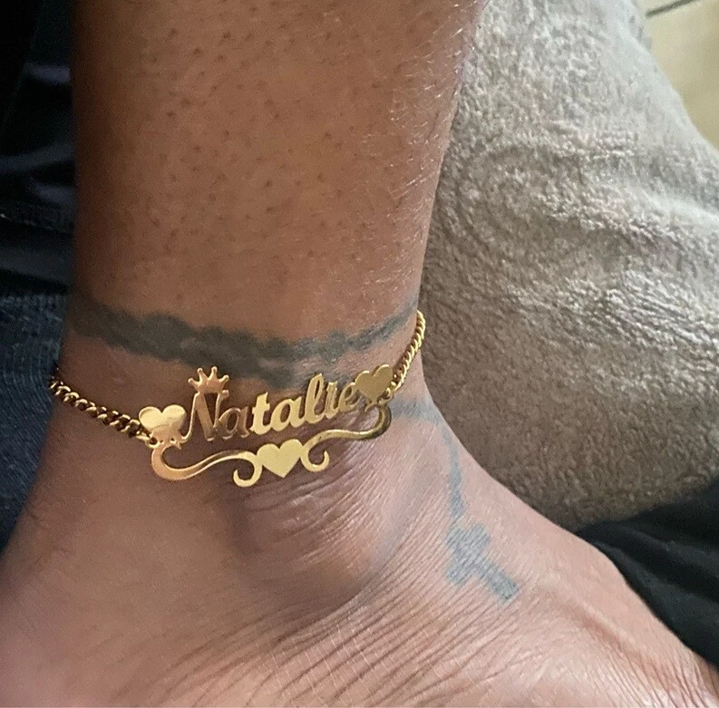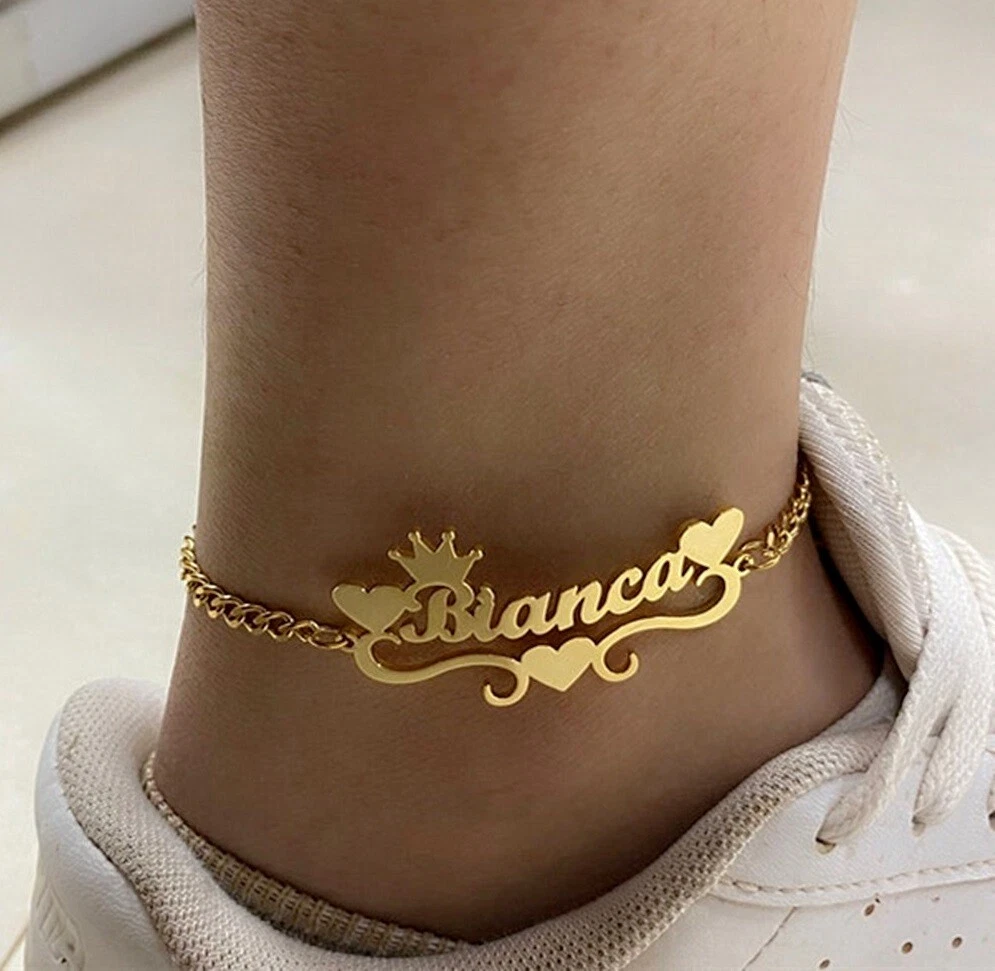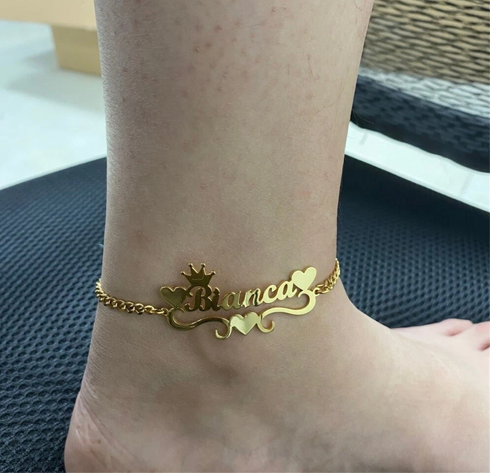 Custom Heart Name Anklet Bracelet Personalized Nameplate Men Women Jewelry Gifts