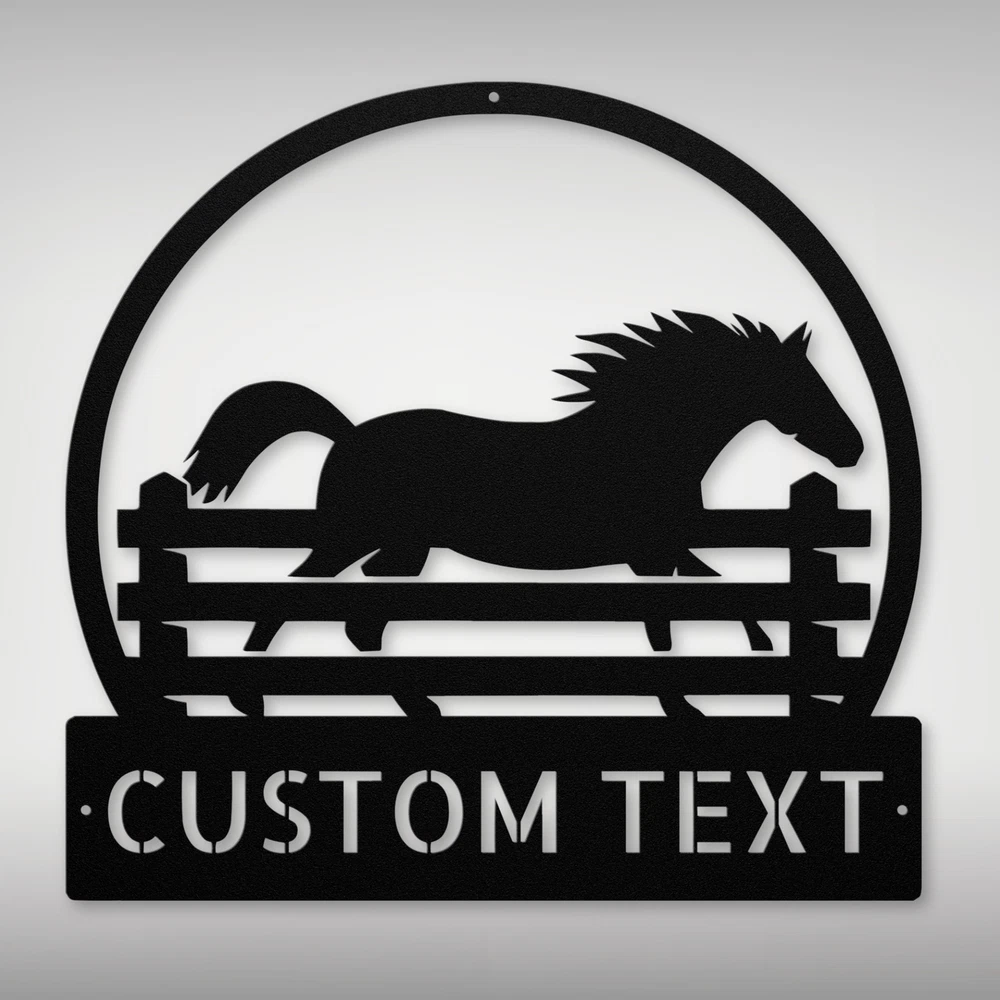 Product Description Custom Horse Metal Sign Durable Wall Decor for Equestrian Lovers Showcase your love for horses with our Custom Horse Metal Sign . This stunning sign is perfect for horse enthusiasts and adds a unique touch to any space. Crafted from 16 gauge high-quality metal, it is designed to last, making it an ideal choice for both indoor and outdoor settings. With a powder-coated finish, this sign is not only visually appealing but also resistant to dust, weather, and moisture. Whether you hang it in your home, barn, or office, it beautifully represents your passion for these magnificent animals. You can customize it with your name or a special message, turning it into a one-of-a-kind piece that truly reflects your personality. This sign makes a fantastic gift for Christmas, birthdays, or any special occasion, ensuring that any horse lover in your life will appreciate this thoughtful gesture. It effortlessly enhances any decor, adding warmth and charm to your surroundings. Key Features: Customizable: Personalize with your name or a special message for a unique touch. Durable Construction: Made from high-quality 16 gauge metal for lasting durability. Weather Resistant: Powder coating protects against dust, moisture, and fading. Versatile Decor: Perfect for homes, barns, offices, or as a gift for horse lovers. Elegant Design: Enhances the beauty of any space while showcasing your love for horses. Elevate your decor with the Custom Horse Metal Sign and celebrate your equestrian passion in style! Service and Color Choice Our metal signs are designed to be personalized just for you, making them the perfect addition to any space! The default color for our signs is Black , but we also offer a variety of beautiful options including Copper, Gold, White, and Silver . After placing your order, simply contact us with your preferred color choice, and we'll ensure your sign is exactly how you envision it. Let’s create something special together!