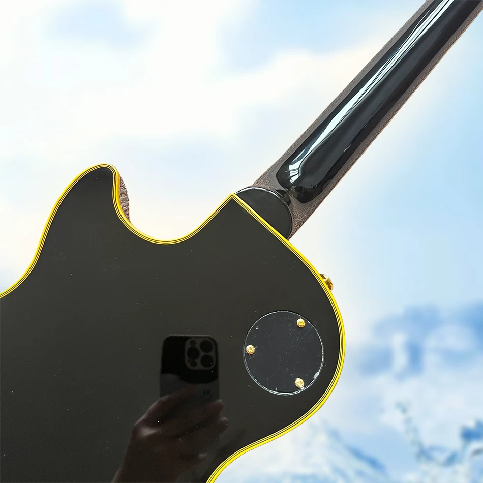 The Custom LP Black Beauty Electric Guitar is a professional-level 6-string instrument perfect for right-handed players looking for a solid mahogany body with a sleek black finish and gold hardware accents. The guitar features a mahogany neck and rosewood fretboard, giving it a rich and warm tone suitable for various musical styles. With 22 frets and a standard series design, this electric guitar is designed for optimal performance and is ideal for musicians seeking a high-quality instrument with a unique yellow binding and logo detailing. About our company profile: My factory is located in Shandong, China, specializing in the production (build) and export of various musical instruments such as electric guitars, electric basses, acoustic, acoustic electric guitars and their accessories. We look forward to sincere cooperation and common development with enterprises and friends all over the world. Quality assurance: We have a professional QC team to ensure high quality products and correct packaging for each shipment. We're confident that our instruments have accurate timbres, captivating sounds, smooth play and great looks. Besides, we are a guitar manufacturer in China, we have our guitar factory and guitar technicians, each guitar will be inspected and tested before shipment, so we will provide you guitars with good quality and low price, I trust you Will get a satisfactory guitar from me. Delivery time: Once payment is confirmed, your item will be shipped within 1-14 business days. Usually, it takes 8-15 days to ship to the US via SF Express, its service is fast and courteous, and we will provide you with a tracking number so that you can easily monitor the shipping progress on their website. Refund policy: We accept returns if you are not 100% satisfied with the quality of your purchase, or if the product arrives to you in a damaged condition. Dissatisfied customers can immediately send back the product with the original packaging within 3 days. We will refund you the cost of the product as soon as I receive the item. Pack: We will use foam and carton packaging for shipping.