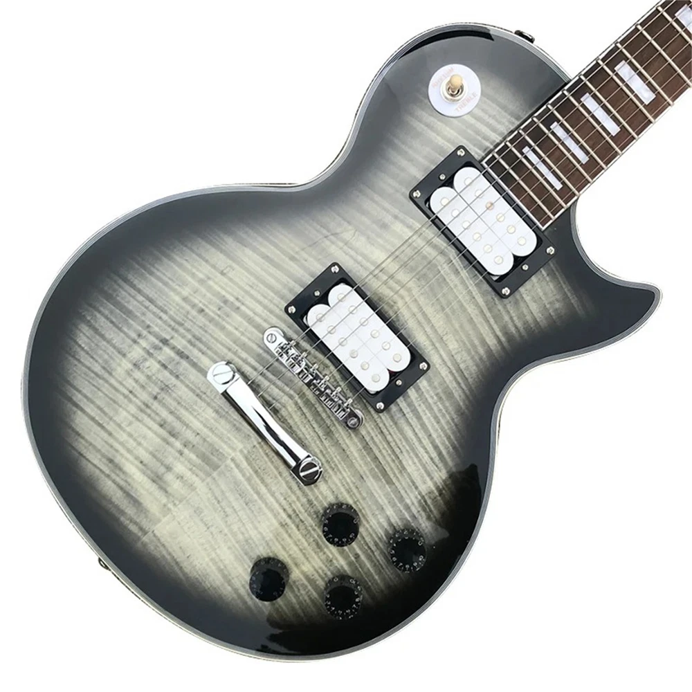 Custom Factory LP HH Pickups Flame Maple Top Grey Electric Guitar High Quality We are a guitar factory from Shandong, China, with more than 20 years of experience in guitar production. We are located in Shandong, China, and our village is known as the "hometown of Guitar", so you can enjoy our more timely and thoughtful service at any time. We have excellent technology in the production of guitars and we focus on the quality and sound quality of our guitars. Each guitar is rigorously tested and meticulously crafted. From being awarded the title of "China Electroacoustic Instrument Industry Base" by the China Musical Instrument Association in 2009, to being awarded the title of "China Electroacoustic Instrument Industry Base Meritorious Unit" by the China Musical Instrument Association in 2019, to being awarded the title of "China Electroacoustic Instrument Industry Base" by the China Musical Instrument Association in 2023, and being named the advanced industrial cluster of China musical instrument industry in 2022. In recent years, around the musical instrument industry, Wuwu Town has appeared 16 "national" and "provincial" titles. Electric guitar production accounts for more than 40% of the country's total production, products are sold to South Korea, Japan, the United States and other more than 30 countries and regions, become an indispensable part of the world guitar industry. Maybe our price is not the lowest, but as the designated OEM factory of European and American brands, our guitars have stable quality, smooth feel and excellent performance. So instead of buying a guitar like a blind box, buying your gear from us might be a more cost-effective option. We guarantee that all products are produced by our factory, and physical photos to ensure the authenticity of product quality. We will retune and polish your guitar before shipping to make sure it is in a good condition. Because our philosophy has always been that we want our guitars to help guitar lovers love music, not just sell products. If you have any questions or are not completely satisfied with our service, please let us know and we will do everything we can to ensure your satisfaction!