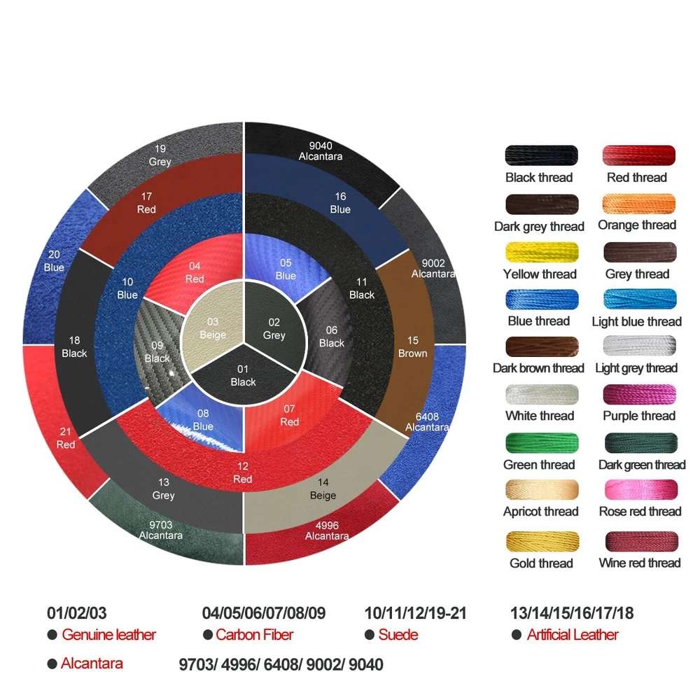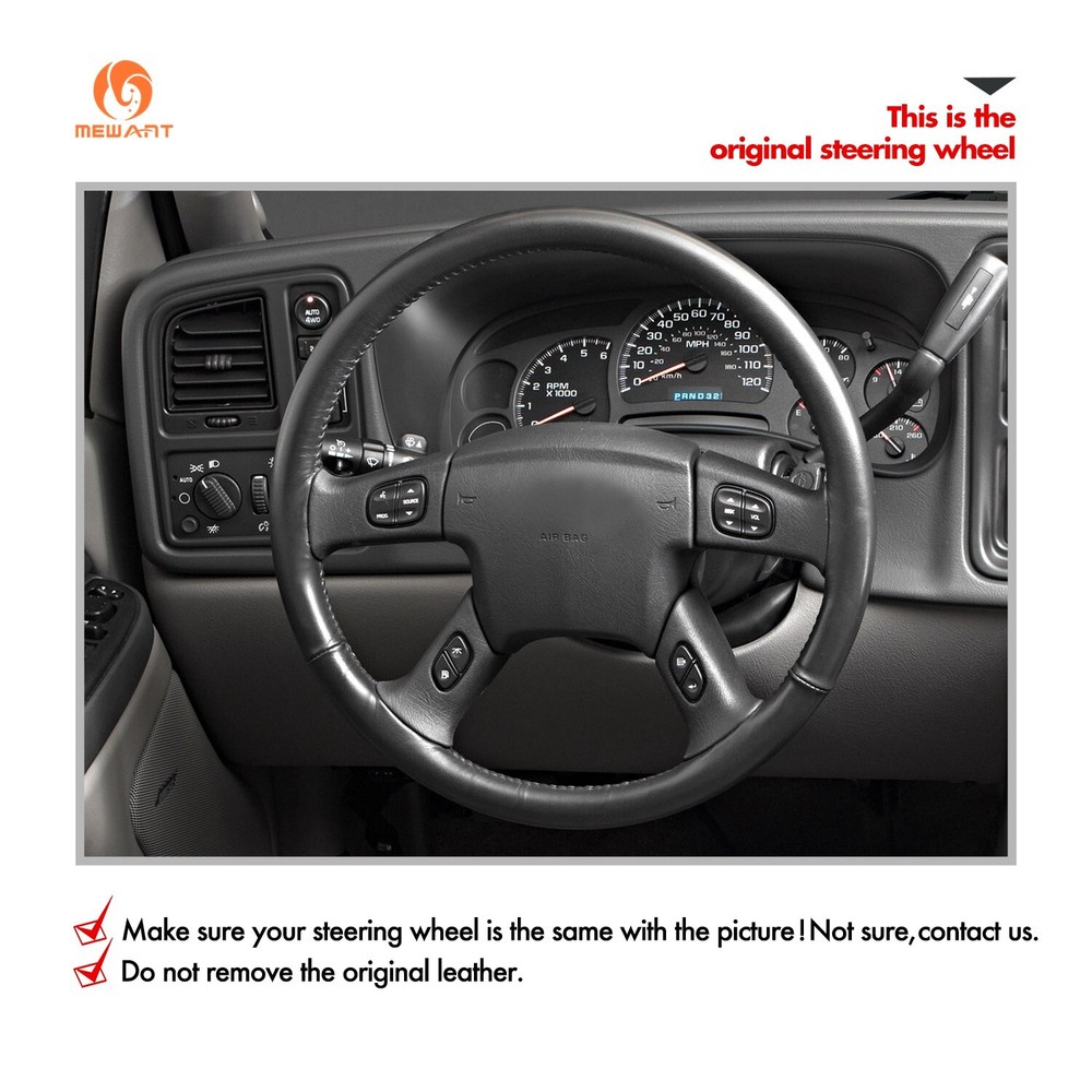 MEWANT Artificial Leather Steering Wheel Cover for Chevrolet Silverado 2003-2007 ONE Car ONE Template Factory buy brand new steering wheels from all over the world, to make the templates which could 100% fit the corresponding car model. Personalized customization Many colors of thread and material for choose to customize. According to the colors and materials you could customize a new style cover. Multiple protection With soft PU leather, guarantee a good grip while driving. With 100% fit Mewant cover, it won’t slip while driving. The Original Steering Wheel: NOTICE This cover Suitable car model: for Chevrolet (Chevy) Silverado 1500 2003-2006 / Silverado 1500 Classic 2007 / Silverado 2500 2003-2006 / Silverado 2500HD Classic 2007 / Silverado 3500 2003-2006 / Silverado 3500 Classic 2007 / TrailBlazer 2002-2009 for GMC Sierra 1500 2003-2006 / Sierra 1500 Classic 2007 / Sierra 2500 2003-2006 / Sierra 2500HD Classic 2007 / Sierra 3500 2003-2006 / Sierra 3500 Classic 2007 / Sierra 3500 CC Classic 2007 / Envoy 2002-2009 / Envoy XL 2002-2006 / Envoy XUV 2004-2005 / Yukon (Yukon XL) 2003-2006 Suitable car model name and launch year are just a reference, different countries have different model name and launch time, so please pay attention to the steering wheel picture above, make sure they are the same , if not sure, feel free to contact us. Default design: Design elements: A: Red Leather Stripe B+D: Black Smooth Artificial Leather C: Black Perforated Artificial Leather E: Red Thread If you want to change the material or color, please contact our customer service when you order. Feature * Increased Safety :High quality leather, super soft & smooth , non-slip & durable. it provides great grip on the steering wheel, massage your palm and relieve drive fatigue , bring you a great touch and feel . * Top Quality: delicate workmanship, super technology and flat sewing stitches, The steering wheel gloves are the perfect way to transform the look of your vehicles interior while protecting your original steering wheel at the same time from wear and tear. Self-installation Needed: Our steering wheel covers need to stitch by yourselves, the installation tools, video and instructions were provided to assistant, please do NOT remove the original leather before the installation, or it will not fit. Attachment:Needle,thread,double sided tape,yellow small blade ,Thimble. Payment Delivery details Terms of sales About us Contact us Payment We accept both Credit card and PayPal. Delivery details Handling Time: The covers are hand-made, usually it can be shipped within 2 to 3 business days. * SpeedPAK to USA, 15-40 working days of delivery. * If you want fast shipping way , like DHL UPS Fedex Aramex,Please contact us ASAP. Terms of sales All sales come with us12 Months warranty. Return items must be in original condition or does not have any sign of abuse or intentional damage. We reserve the right not to refund S&H when the item has been posted. If you have any questions, Please contact with us via eBay message or our customer service e-mail. About us Mewant-Professional Customization Just for You. Mewant Official Store is the official store on ebay.MEWANT is a professional car steering wheel cover manufacturer. We are committed to providing high quality steering wheel covers for our customers. Our materials range from Alcantara, genuine leather, artificial leather, PU carbon fiber, synthetic suede. Please do not hesitate to contact us if you need specific customization. Contact us * A ny concerns of tracking,installing and so on, Please contact us in any time * Any problems after receiving the item,please contact us before leave the Negative Feedback * We are looking forward to receiving your precious 5 STAR Positive Feedback