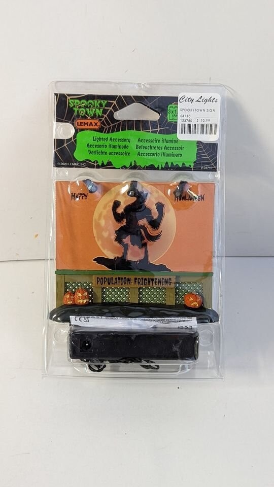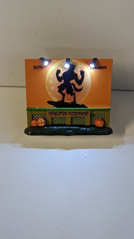 Please ask any questions before making the purchase. New, never used. Custom Lemax Spooky Town Lighted Billboard.. Happy Howlaween Features Werewolf. Approx. size (H x W x D) 4 4 .29 x 4.72 x 1.02 inches 1 10.9 x 12 x 2.6 cm S/H FOR THIS ITEM WILL BE $10.00 IN THE STATES AND WILL INCLUDE DELIVERY CONFIRMATION. ALL SHIPPING IN THE STATES WILL BE DONE USPS, FIRST CLASS OR PRIORITY!