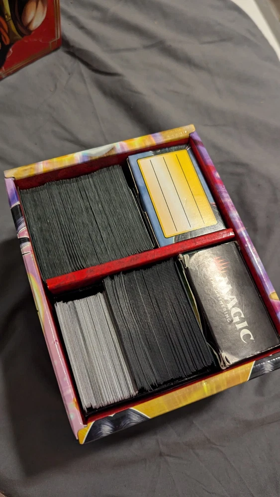 If you were to order a deck from me, I am going to make it the way I would play. I build every deck to your liking and I play test every deck before shipping. Sometimes I don't like how it plays and I'll rebuild it from scratch. My end goal is to make every deck as smooth and effective as I possibly can. I want you to have a good play experience with tons of table interaction and I want you to be satisfied with your purchase. I am by no means a great player. I just started a family and would like to give back to the world, so these decks are going to be created in a way that you can teach your kids with them, or just play them yourself. The reality is when someone creates a pre built deck it's made of cards that go well with the commanders. These lots will contains commons, uncommons, rares and foils. Truth be told if I have some decent mythics that I believe will benefit the deck, then I will put those in there too. I'm not trying to rip anybody off, though that is what a lot of sellers do. I am only trying to sell the cards I have been collecting and stocking piling for the better part of 10 years. You are guaranteed to get at least a 100 card deck consisting of commons/uncommons/rares and as I stated above, mythics if I feel they are beneficial(they probably will be) I'll most likely put 10-30 extra cards that you can swap out just as a thank you gift for purchasing. PLEASE be patient with me afterwards, I do have a full time job and I would like to take time in building the decks to make sure that you are getting the best deal possible. The pictures I have posted only show a fraction of the cards I have If you have any questions or concerns about how I build and construct decks, please feel free to reach out and ask. I am a relatively easy going guy and I'll be more than happy to answer them. If you are willing to pay a little extra, I am willing to put higher priced cards in.