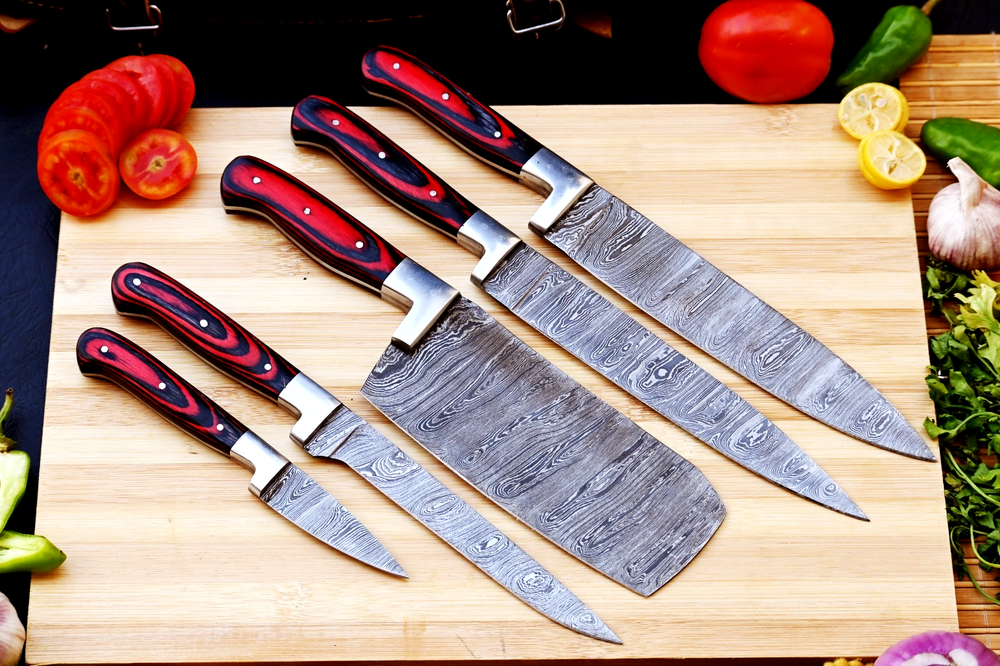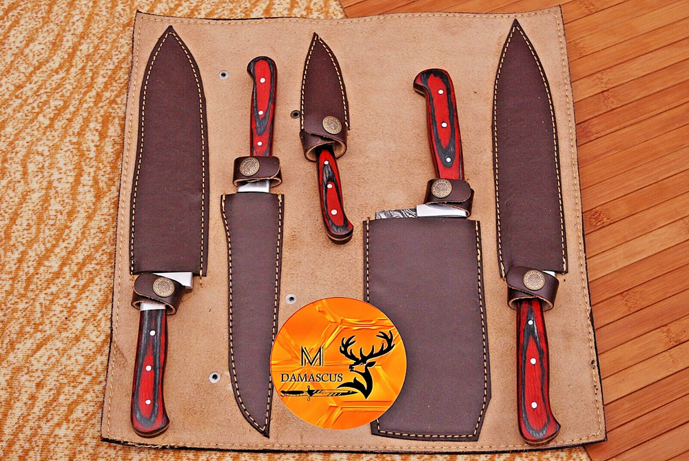 Custom Made Forged Damascus Steel Chef Set Kitchen Knives 1574
