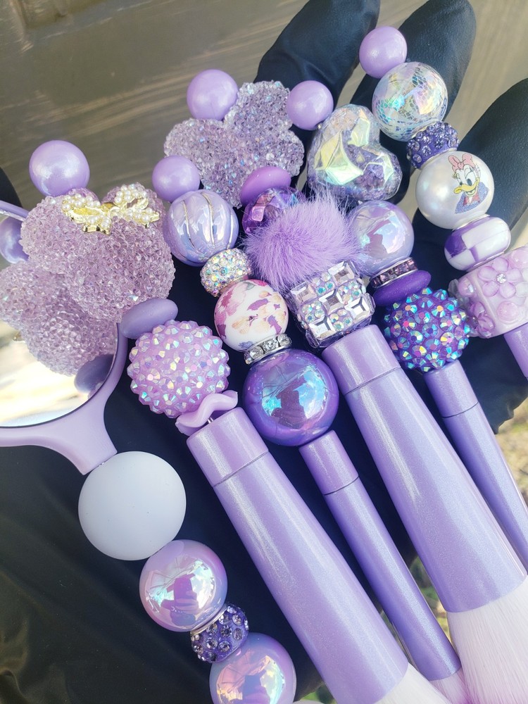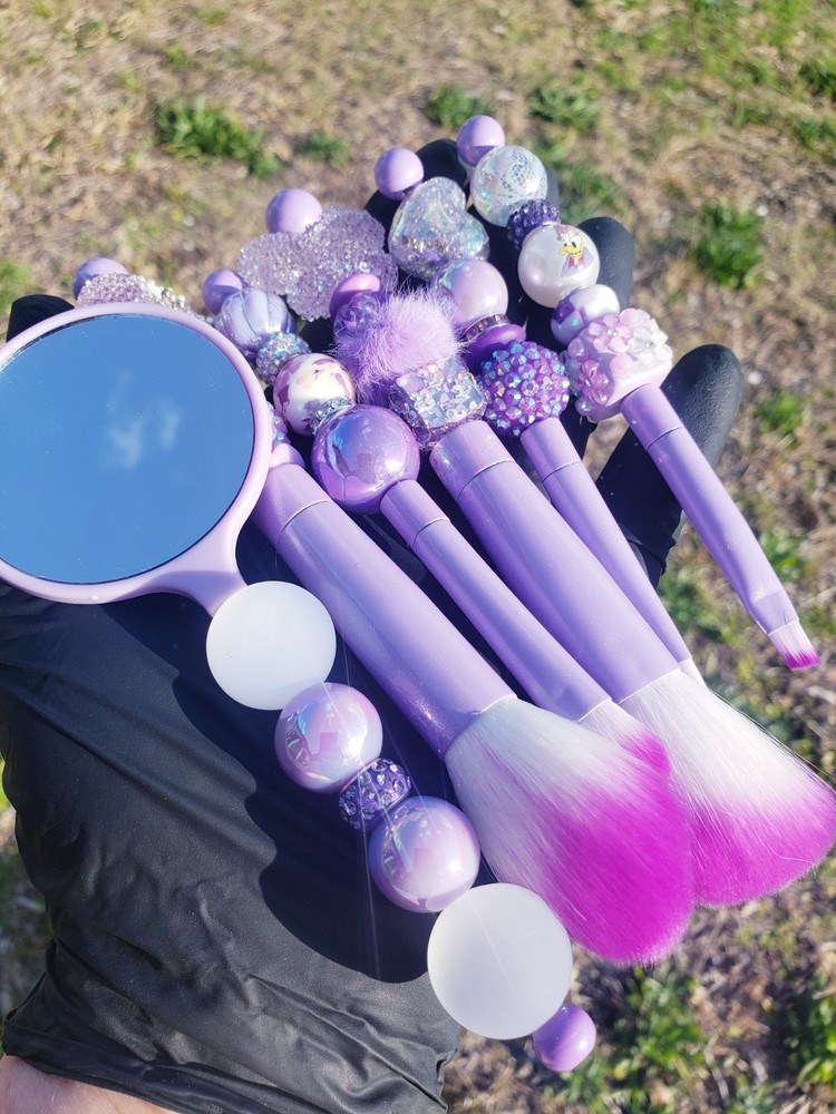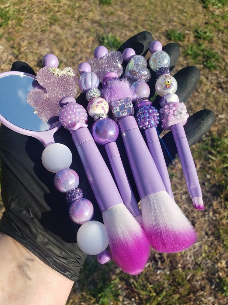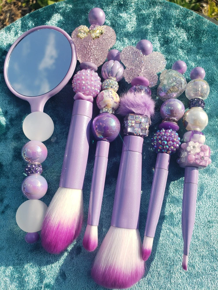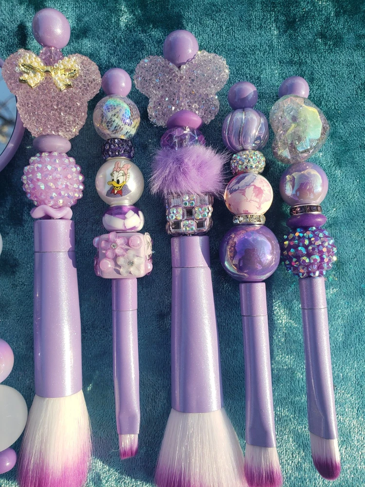Custom Made Glam Jeweled 9 Pc Make Up Brush Set [Disney Inspired]. Important Note- THE HAND MIRROR WITH THIS LITING IS MISSING SOMEHOW- PROBABLY IN STORAGE. IF REQUESTED I WILL MAKE YOU A NEW/DIFFERENT MIRROR ONLY IF YOU MSG ME FIRST BEFORE. NO NEED TO LEAVE BAD FEEDBACK FOR NOT READING THE DESCRIPTION & DONT RECEIVE ONE!! 🥰 THANK YOU FOR UNDERSTANDING!!!!! These pictures do NO JUSTICE MIRROR IS LOST! Must request a new one (RANDOM MIRROR) before purchasing. A 4 piece make up brush set handmade with the utmost finest and expensive beads. Each brush is fashioned to tell its own story. Completed with durable jewels that have been meticulously tested and, of course made with love to last forever. Good luck NOT feeling glamorous after using these. ;) These are one of a kind , custom brushes. There are no duplicates. CHECK OUT MY OTHER BRUSHES ON MY PAGE. SEND AN OFFER ♡ *ALL BRUSHES COME WITH HEADBAND,FACE RAG AND MAKEUP BAG READ MY BIO B4 ORDERING PLEASE