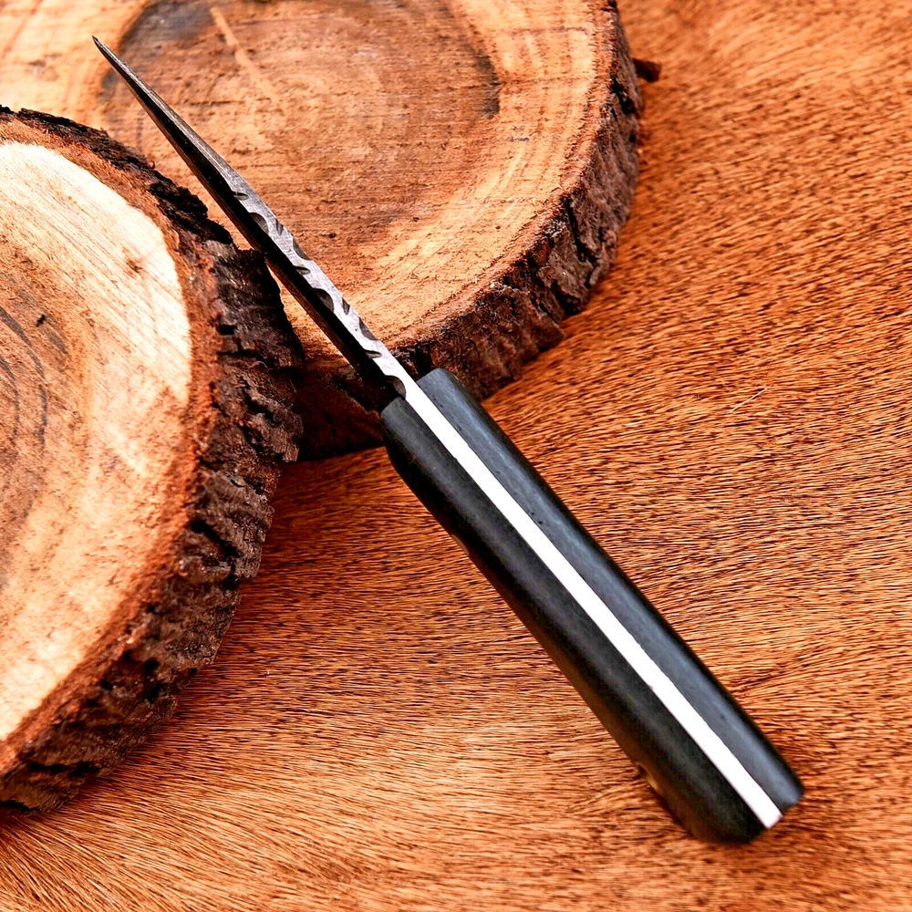 CUSTOM MADE HAND FORGED DAMASCUS STEEL BLADE HUNTING CAMPING SURVIVAL KNIFE Micarta Handle This superb design knife is hand forged. Blade of this knife has a nice file work and is made of 512 layers of 4340 stainless steel and 1075 high carbon steel and hardness 55-58 HRC . This robust knife is lab tested under intense conditions, the balance and shape of this knife ensures perfect grip. Overall Length: 7" Inches Blade Length: 3.6" Inches Handle Length: 3.6" Inches Damascus Design: Rain Drop Pattern Layers: 512 Package Includes: with Leather Sheath Warning: Keep fingers clear of blades. Store away from children.