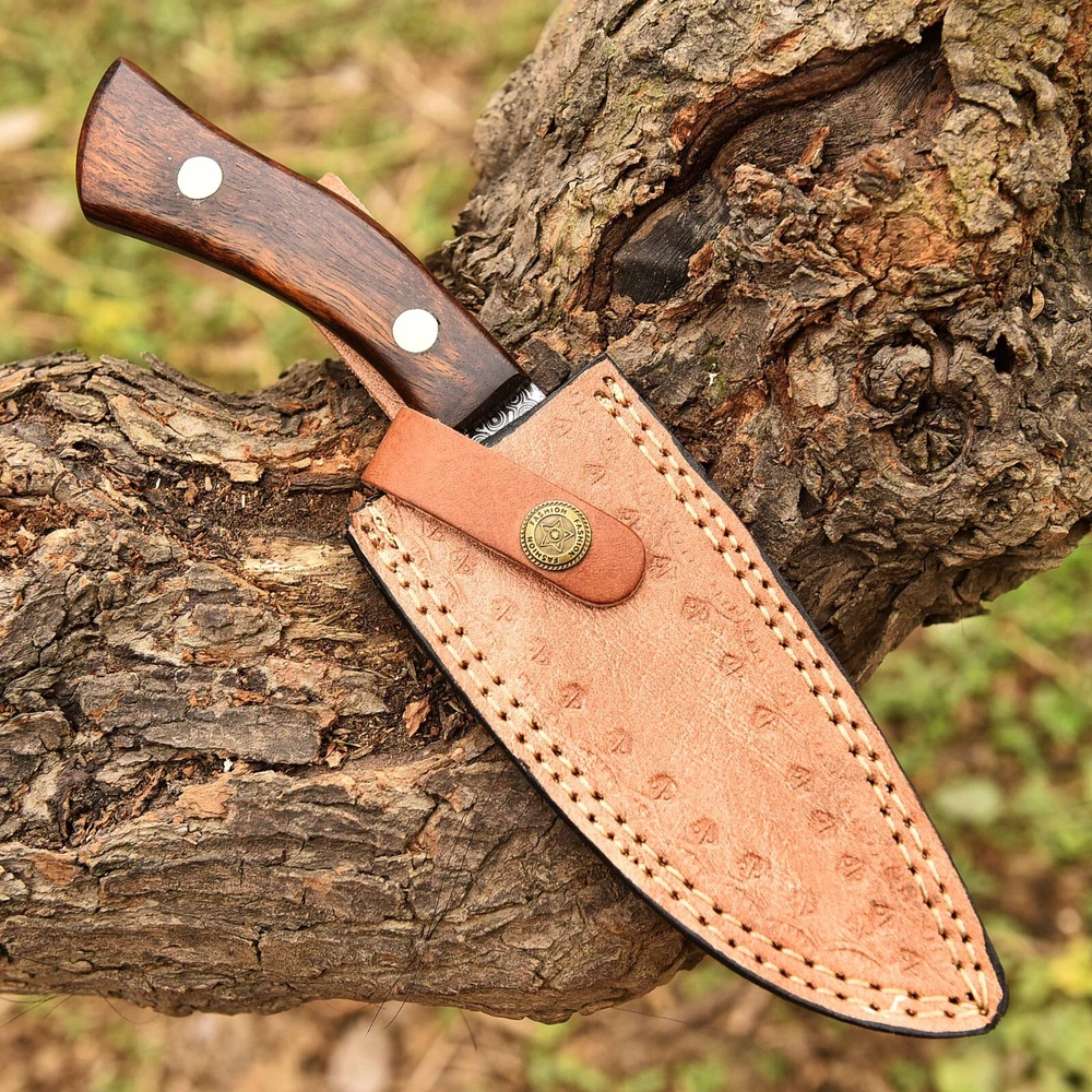 CUSTOM MADE HAND FORGED DAMASCUS STEEL HUNTING CAMPING KNIFE /LEATHER COVER 2889