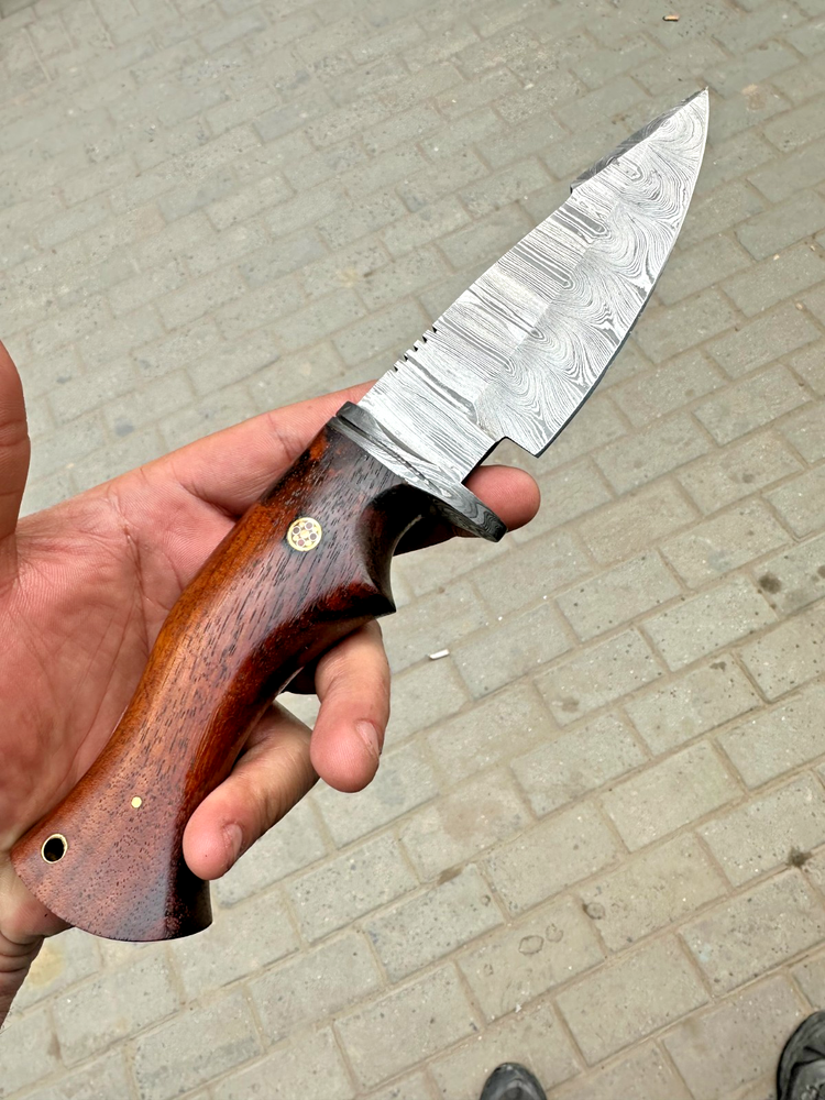 Blade Color: Gray Features: Sheath Included Blade Material: Damascus Steel Type: Everyday Carry, Hunting, Survival, Throwing, BushCraft, Camping, Gift, Hiking, WildLife, OutDoor Tang: Full Country of Origin: United States Blade Edge: Plain Handmade: Yes Brand: Damascus Original/Reproduction: Original Handle Material: Wood Vintage: No Blade Length: 5" INCHES Blade Type: Drop Point Dexterity: Ambidextrous