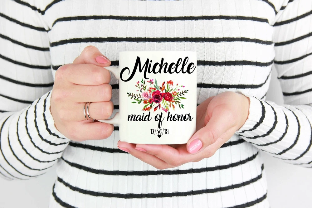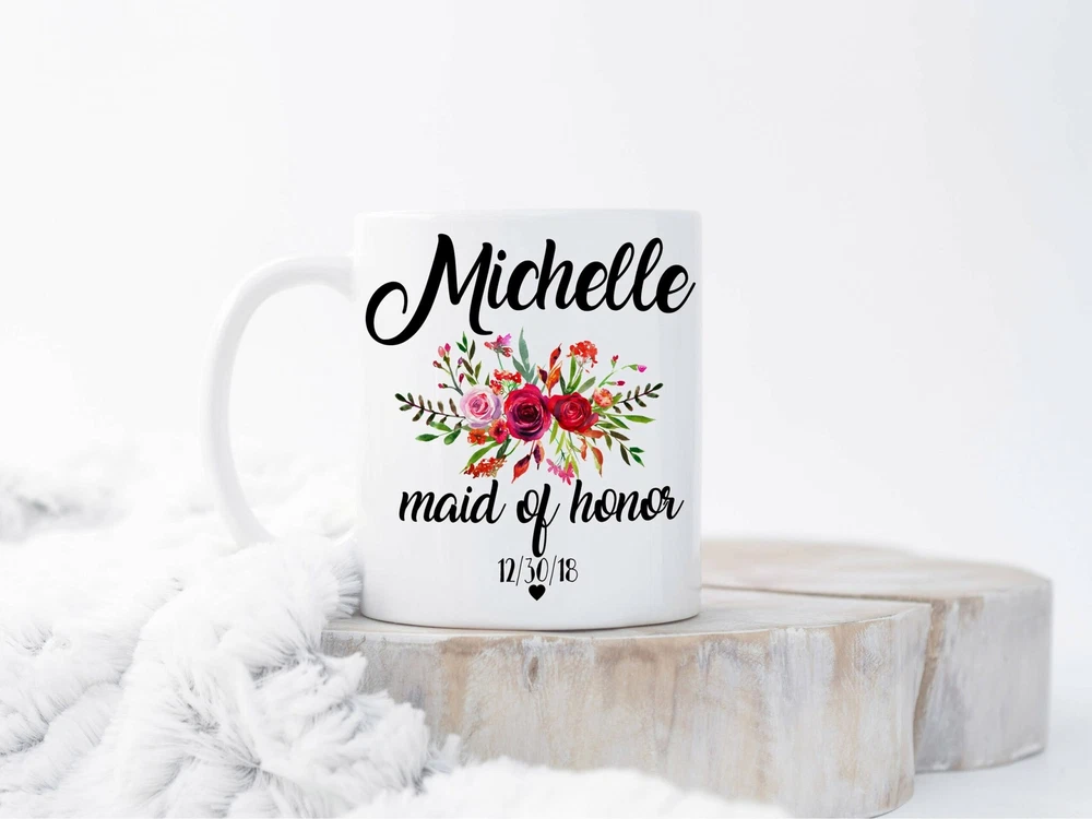 Custom Maid Of Honor Mug Bridal Party Gifts Maid Of Honor Gift Bridesmaid Product Details.. This high quality 11oz. ceramic white mug has a premium hard coat that provides crisp and vibrant color reproduction sure to last for years. Perfect for all hot & cold beverages. The highest quality printing possible is used. It will never fade no matter how many times you wash it. Material: 100% Ceramic. Print both sides. Dishwasher and Microwave Safe. High Gloss + Premium White Finish. Printed in the U.S.A. Personalized & Custom. We support personalized and custom mug to add custom, when placing an order, you can add notes to the "order note" in shipping address section. Also you can contact us directly via message. Shipping Info. Ready to ship in 1 to 2 business days, All products are made-to-order and proudly printed in the United States. Shipped by USPS and DHL, You will receive your order in 5-7 days. Replace & Refund. All products are defective during shipping broken, chipped will be replaced free of charge. You are not satisfied with the product, we will refund 100% money to you. If any other issues arise, please do not hesitate to message, we would be more than happy to assist you.
