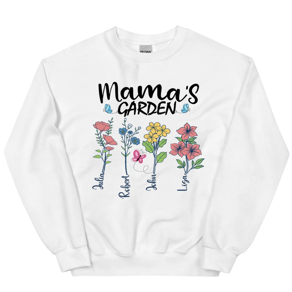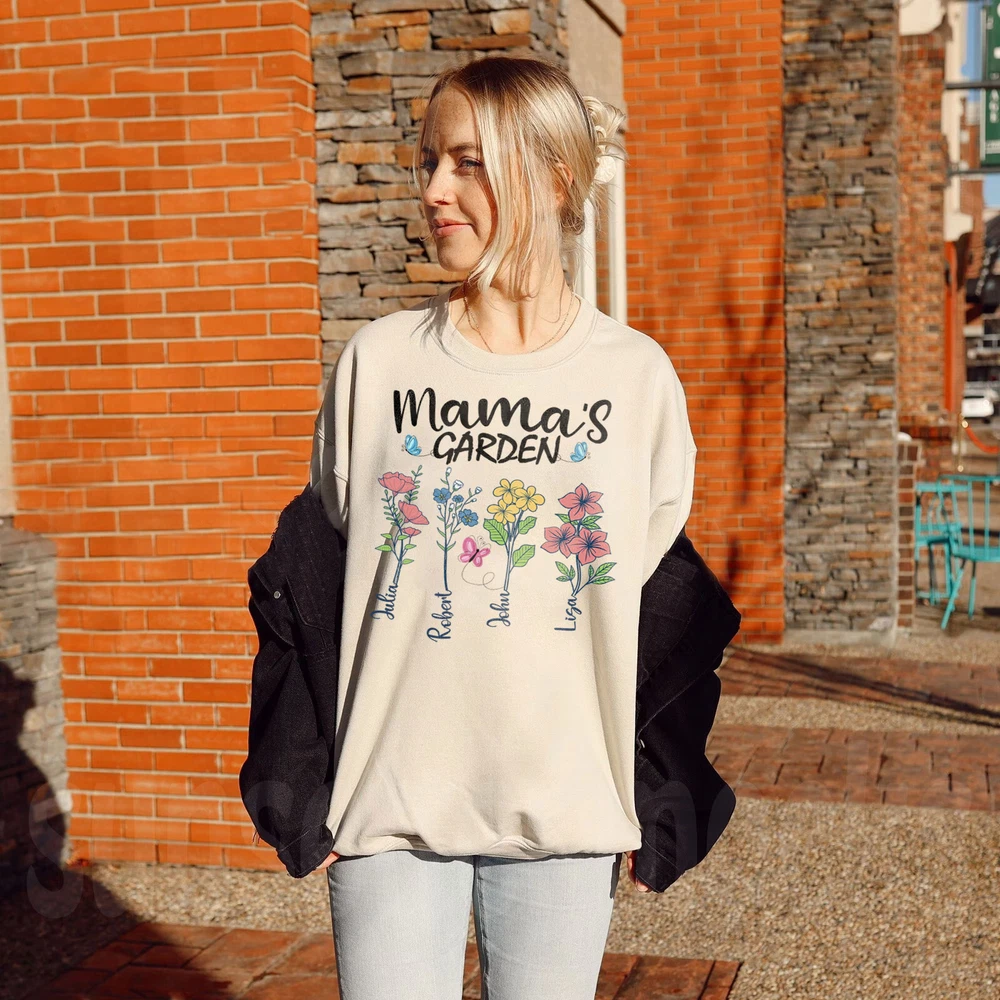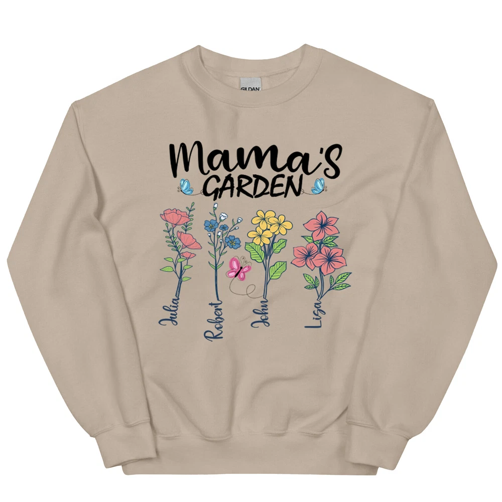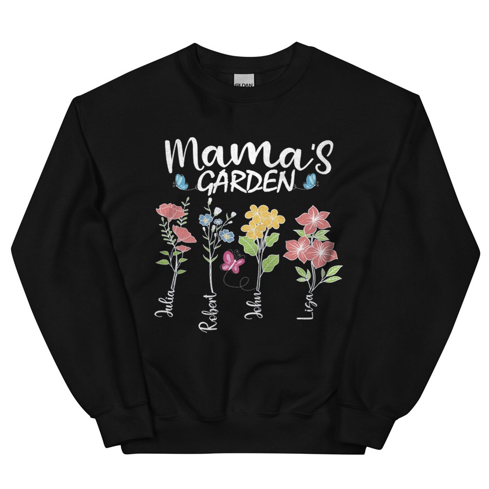 Custom Mothers Day Sweatshirt - Personalized Mom Gift Mama's Garden Graphic Shirt This custom sweatshirt is the perfect personalized Mother's Day gift for the special mom in your life. The design features a lovely graphic of a garden with the text "Mama's Garden" to celebrate and honor the nurturing role of motherhood. Made with high-quality materials, this sweatshirt is both comfortable and stylish, perfect for everyday wear. The customization option allows you to add a personal touch by including the name or message of your choice. Give the gift of warmth, love, and appreciation this Mother's Day with this unique and thoughtful sweatshirt. A sturdy and warm sweatshirt bound to keep you warm in the colder months. A pre-shrunk, classic fit sweater that's made with air-jet spun yarn for a soft feel and reduced pilling. • 50% cotton, 50% polyester • Pre-shrunk • Classic fit • 1x1 athletic rib knit collar with spandex • Air-jet spun yarn with a soft feel and reduced pilling • Double-needle stitched collar, shoulders, armholes, cuffs, and hem PAYMENT We accept credit, debit, and gift cards; Apple Pay, Google Pay, PayPal, and PayPal Credit. CONTACT US This page content is yet to come Please ad us to your favorite seller and visit again later Thank You CUSTOMER SATISFACTION We try our very best to make sure every customer is completely satisfied. If there's a problem, message us! We're happy to help NOTICE Wrongly ordered sizes won't be eligible for refunds . We make everything on demand, so requesting a size exchange would mean producing an entirely new product.