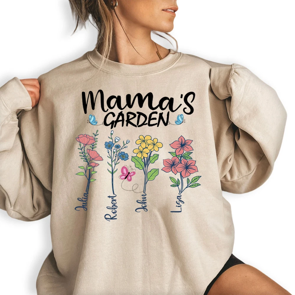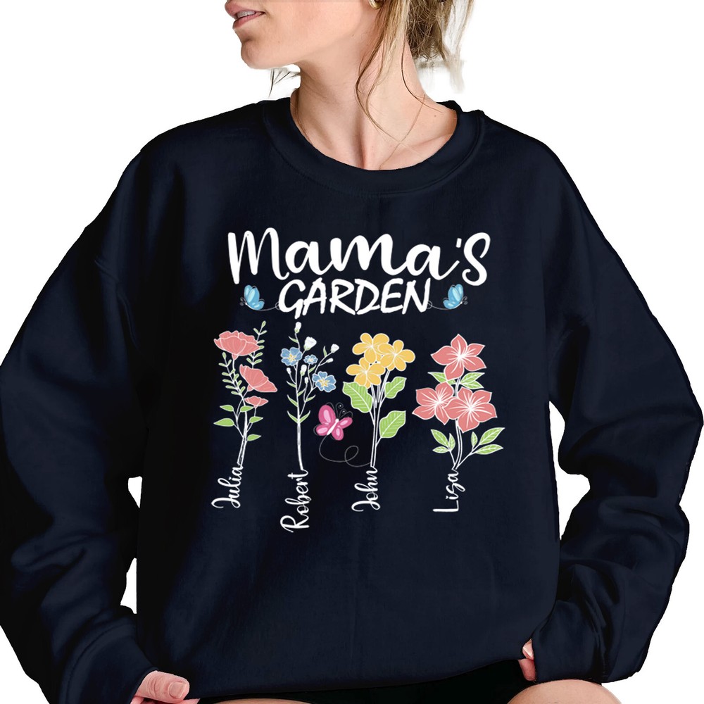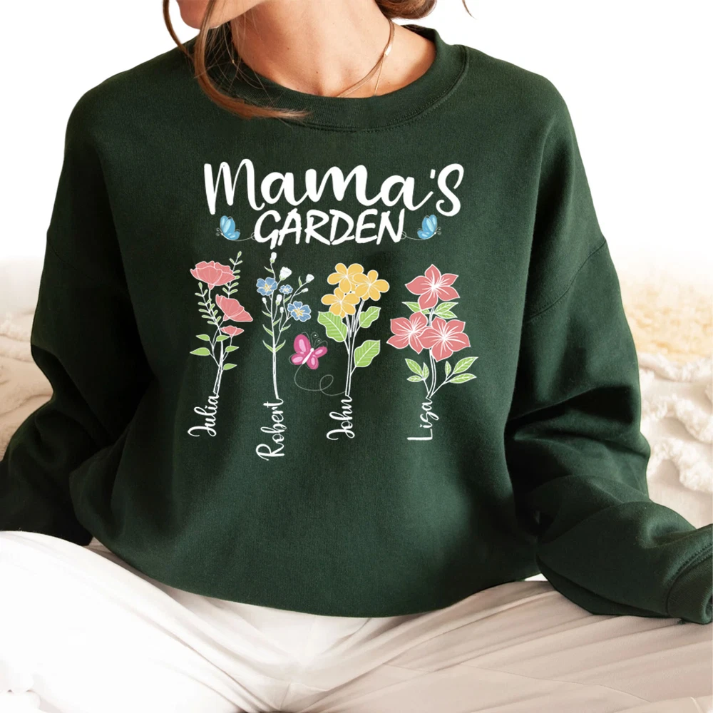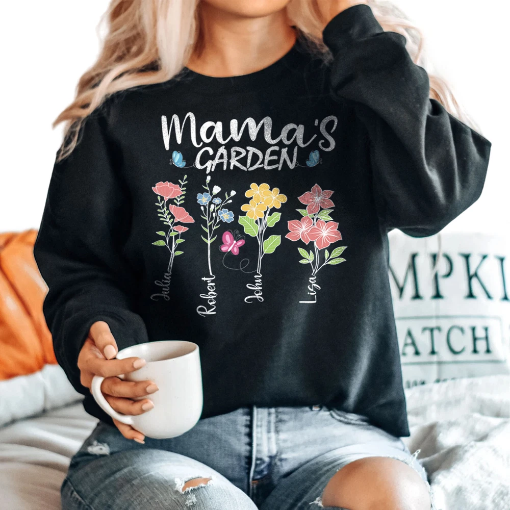Custom Mothers Day Sweatshirt - Personalized Mom Gift Mama's Garden Graphic Shirt This custom sweatshirt is the perfect personalized Mother's Day gift for the special mom in your life. The design features a lovely graphic of a garden with the text "Mama's Garden" to celebrate and honor the nurturing role of motherhood. Made with high-quality materials, this sweatshirt is both comfortable and stylish, perfect for everyday wear. The customization option allows you to add a personal touch by including the name or message of your choice. Give the gift of warmth, love, and appreciation this Mother's Day with this unique and thoughtful sweatshirt. A sturdy and warm sweatshirt bound to keep you warm in the colder months. A pre-shrunk, classic fit sweater that's made with air-jet spun yarn for a soft feel and reduced pilling. • 50% cotton, 50% polyester • Pre-shrunk • Classic fit • 1x1 athletic rib knit collar with spandex • Air-jet spun yarn with a soft feel and reduced pilling • Double-needle stitched collar, shoulders, armholes, cuffs, and hem PAYMENT We accept credit, debit, and gift cards; Apple Pay, Google Pay, PayPal, and PayPal Credit. CONTACT US This page content is yet to come Please ad us to your favorite seller and visit again later Thank You CUSTOMER SATISFACTION We try our very best to make sure every customer is completely satisfied. If there's a problem, message us! We're happy to help NOTICE Wrongly ordered sizes won't be eligible for refunds . We make everything on demand, so requesting a size exchange would mean producing an entirely new product.