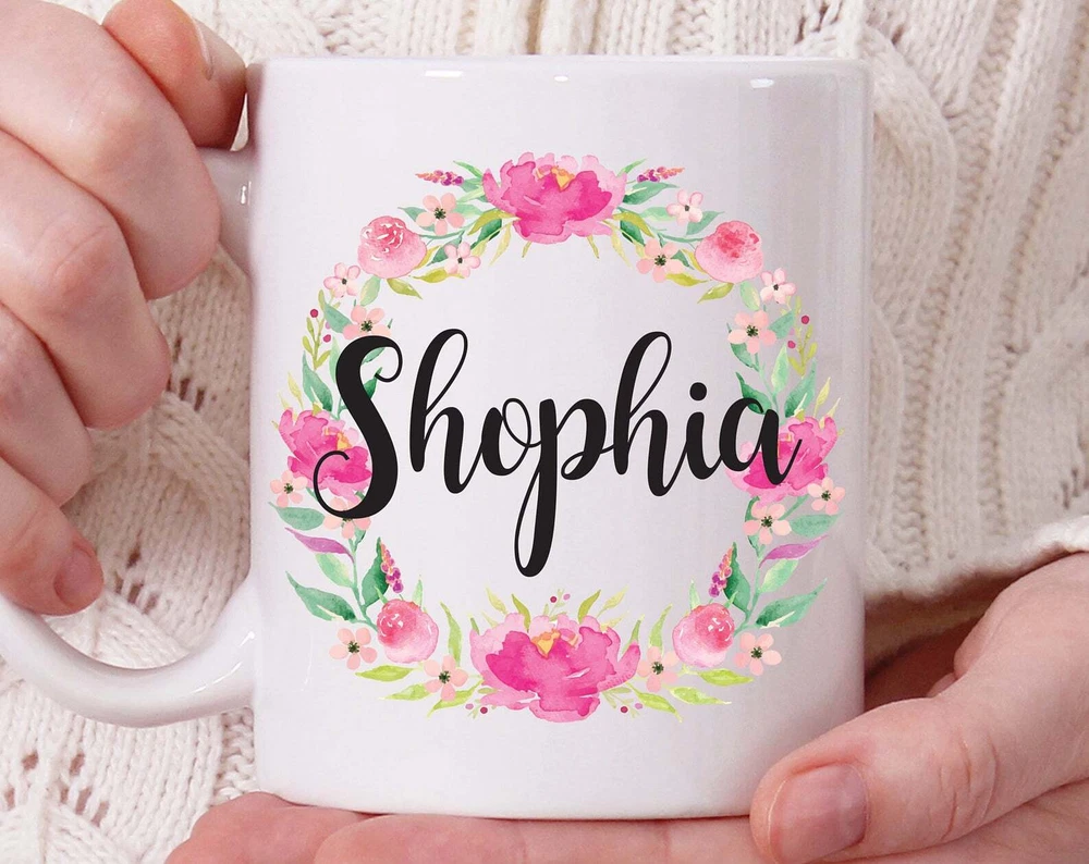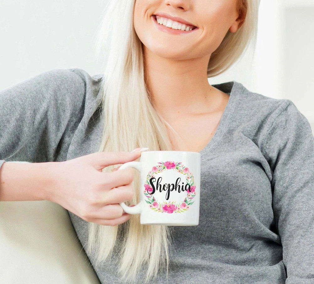 Custom Name Mug Personalized Mug Flower Wreath Mug For Friend Bridesmaid Mug Product Details.. This high quality 11oz. ceramic white mug has a premium hard coat that provides crisp and vibrant color reproduction sure to last for years. Perfect for all hot & cold beverages. The highest quality printing possible is used. It will never fade no matter how many times you wash it. Material: 100% Ceramic. Print both sides. Dishwasher and Microwave Safe. High Gloss + Premium White Finish. Printed in the U.S.A. Personalized & Custom. We support personalized and custom mug to add custom, when placing an order, you can add notes to the "order note" in shipping address section. Also you can contact us directly via message. Shipping Info. Ready to ship in 1 to 2 business days, All products are made-to-order and proudly printed in the United States. Shipped by USPS and DHL, You will receive your order in 5-7 days. Replace & Refund. All products are defective during shipping broken, chipped will be replaced free of charge. You are not satisfied with the product, we will refund 100% money to you. If any other issues arise, please do not hesitate to message, we would be more than happy to assist you.
