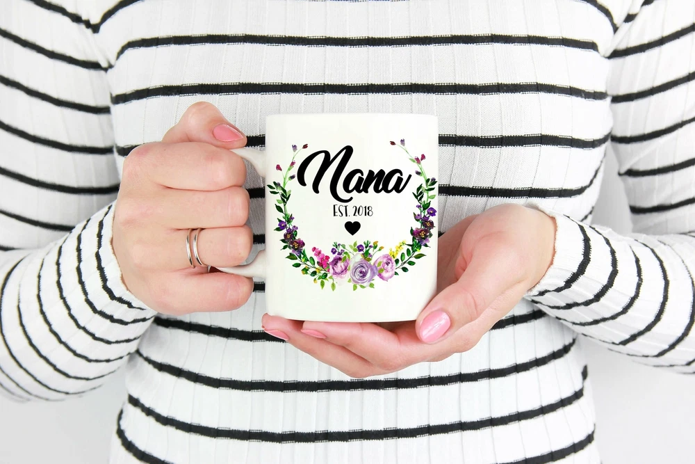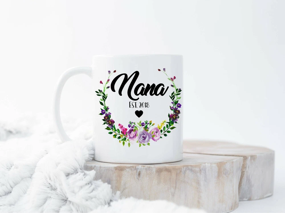 Custom New Nana Mug Grandma Est Mug New Grandma Gift Grandma To Be New Nana Gift Product Details.. This high quality 11oz. ceramic white mug has a premium hard coat that provides crisp and vibrant color reproduction sure to last for years. Perfect for all hot & cold beverages. The highest quality printing possible is used. It will never fade no matter how many times you wash it. Material: 100% Ceramic. Print both sides. Dishwasher and Microwave Safe. High Gloss + Premium White Finish. Printed in the U.S.A. Personalized & Custom. We support personalized and custom mug to add custom, when placing an order, you can add notes to the "order note" in shipping address section. Also you can contact us directly via message. Shipping Info. Ready to ship in 1 to 2 business days, All products are made-to-order and proudly printed in the United States. Shipped by USPS and DHL, You will receive your order in 5-7 days. Replace & Refund. All products are defective during shipping broken, chipped will be replaced free of charge. You are not satisfied with the product, we will refund 100% money to you. If any other issues arise, please do not hesitate to message, we would be more than happy to assist you.