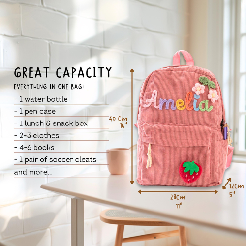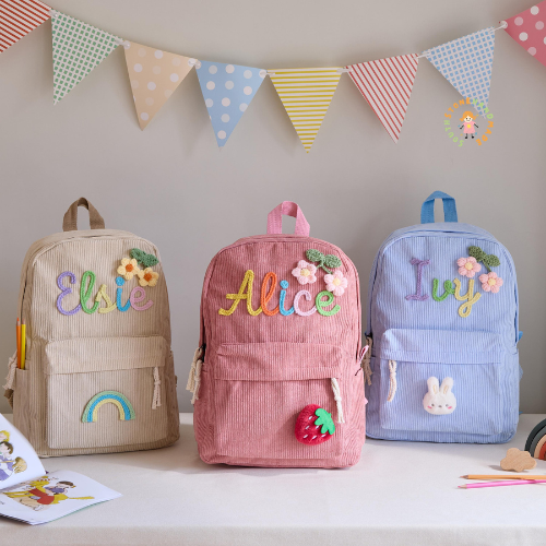🎒 Personalized Kids Backpack – Custom Name School Bag for Boys & Girls | Perfect for Preschool, Kindergarten, Daycare & Gifts 🎁 Make this school year extra special with our ✨ Personalized Kids Backpack ✨ – a fun, stylish, and functional bag designed just for your little one! Perfect for preschoolers, kindergarteners, and young students , this custom backpack blends personality, comfort, and everyday practicality. 🧸 How to Personalize: 1️⃣ Choose your favorite backpack color 🎨 2️⃣ Pick a cute design that fits your child’s style 🖼️ 3️⃣ Add your child’s name (max 8 letters) and select a yarn color for the perfect final touch 💖 ⚠️ Limiting the name to 8 letters helps keep the embroidery neat, clear, and beautiful! 🌟 Why You’ll Love It: 💼 High-Quality & Comfortable ✔️ Size: 16" x 11" x 5" – spacious yet lightweight for daily use ✔️ Made from soft, durable corduroy that’s gentle on small shoulders 🐻 ✔️ Adjustable straps ensure a perfect fit as your child grows 🎉 Great for All Occasions 🎒 Ideal for school, daycare, family outings , or as a unique birthday gift 👪 Parents can also use it as a stylish caregiver bag for essentials on the go 🧼 Easy Care Instructions 🖐️ Recommended: Hand wash and air dry for best results 🧺 For machine wash: Use cold water on delicate cycle , then lay flat to dry 💖 Whether you're prepping for a new school year or looking for a one-of-a-kind gift, our custom name backpack is the perfect choice to make your child smile every day! 😍 👉 Order now to create a backpack as unique and special as your little one! 🌈